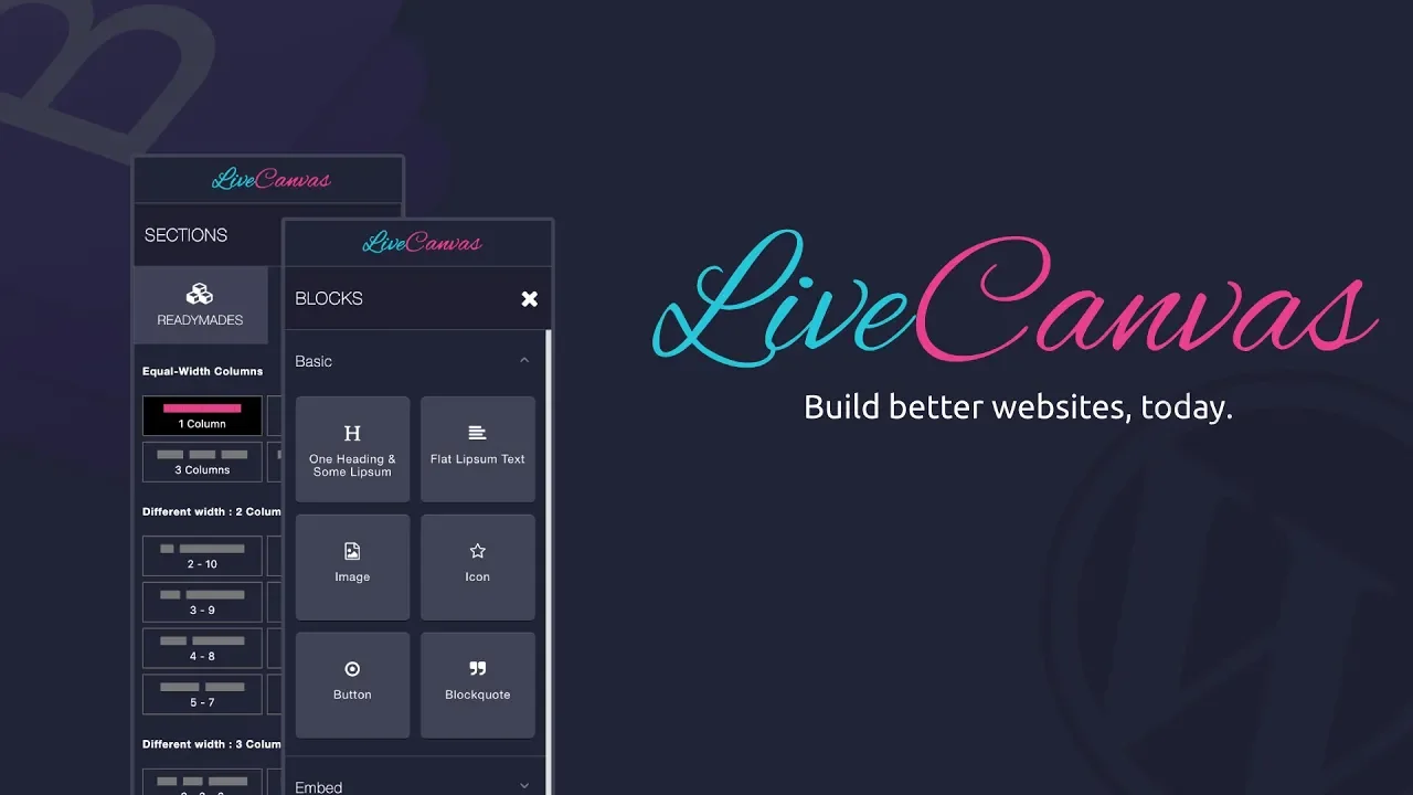 Engineered for performance Packed as a super small (<100kb gzipped) WordPress plugin, LiveCanvas will allow you to build great web pages that effectively communicate your message while keeping low weight. No extra CSS or JS bloat added. Just pure Bootstrap4.