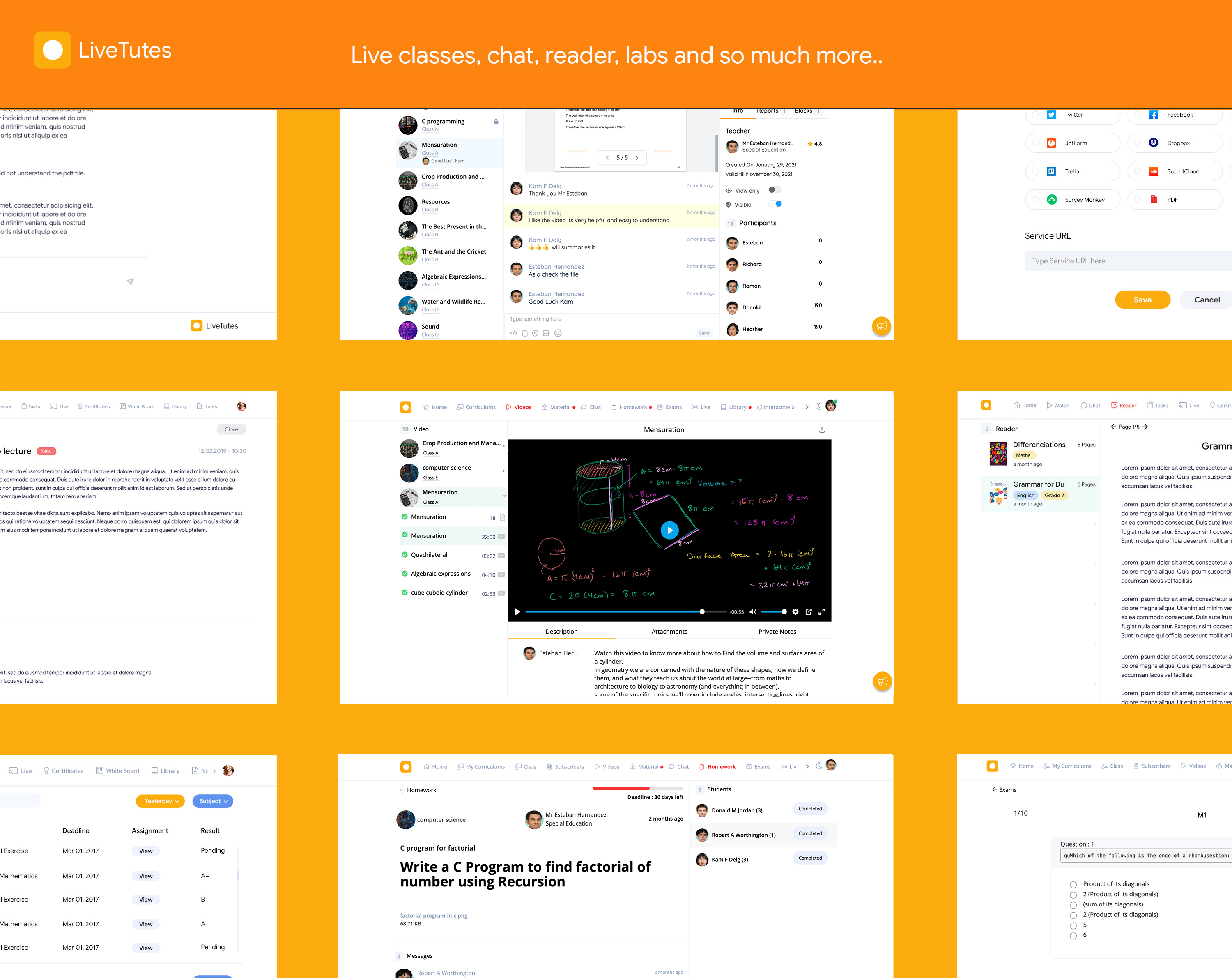 Hi betapage, LiveTutes is a smart modern e-learning management platform that can manage the entire working cycle of the administration, which includes teachers, students, live Sessions, recorded video, course material, libraries, chat, direct messages, exams, certifications, evaluation. It boosts the interactions between students and teachers flawlessly. Livetutes applicable to be used by schools, universities, colleges, private institutions, and private tutors. Some of its features: ? Unlimited courses ? Live Sessions ? Recorded Videos ? Chat ? Interactive Library ? Direct Messages ? Exam ? Interactive Lesson ? Timetable and much more, try it now