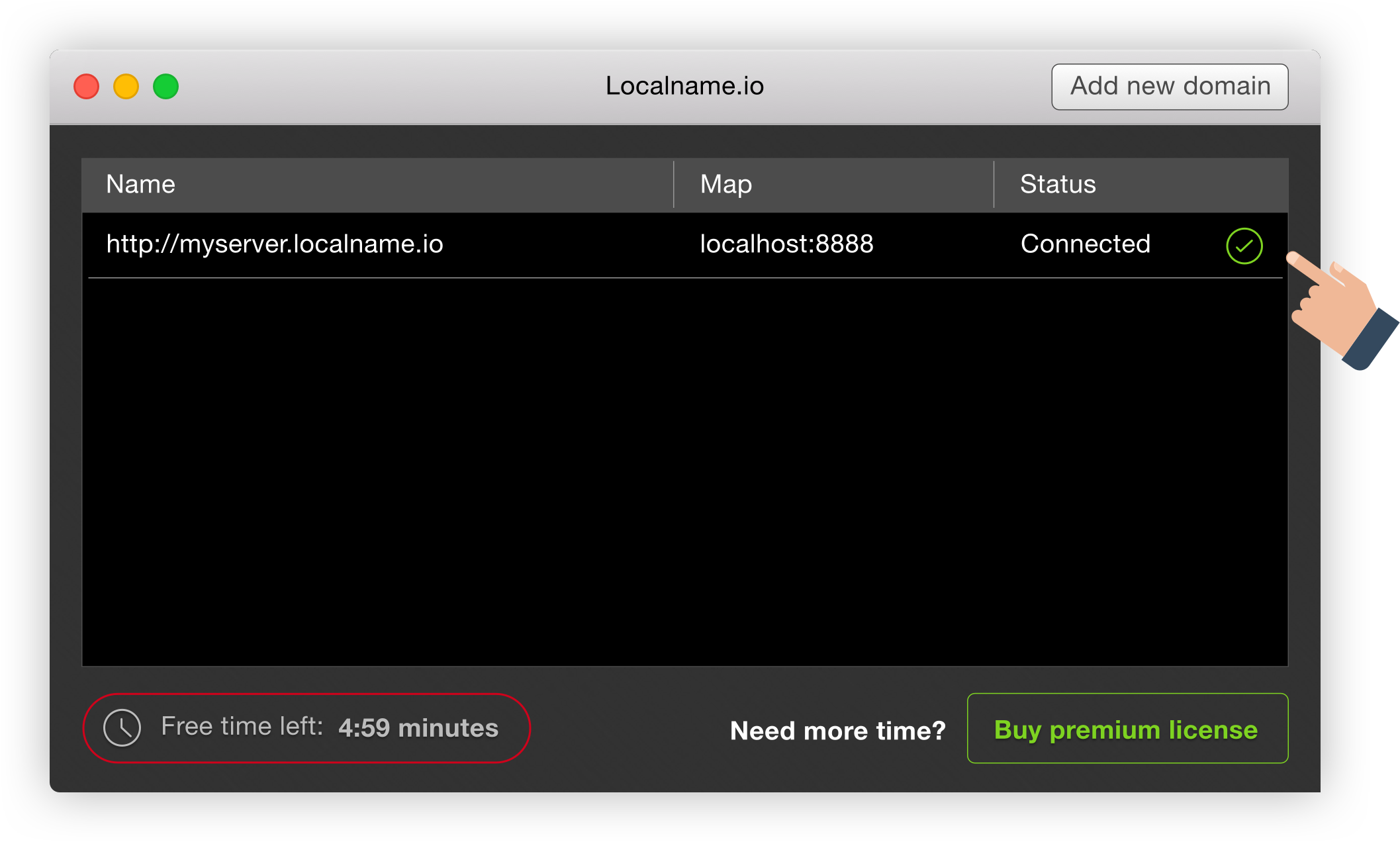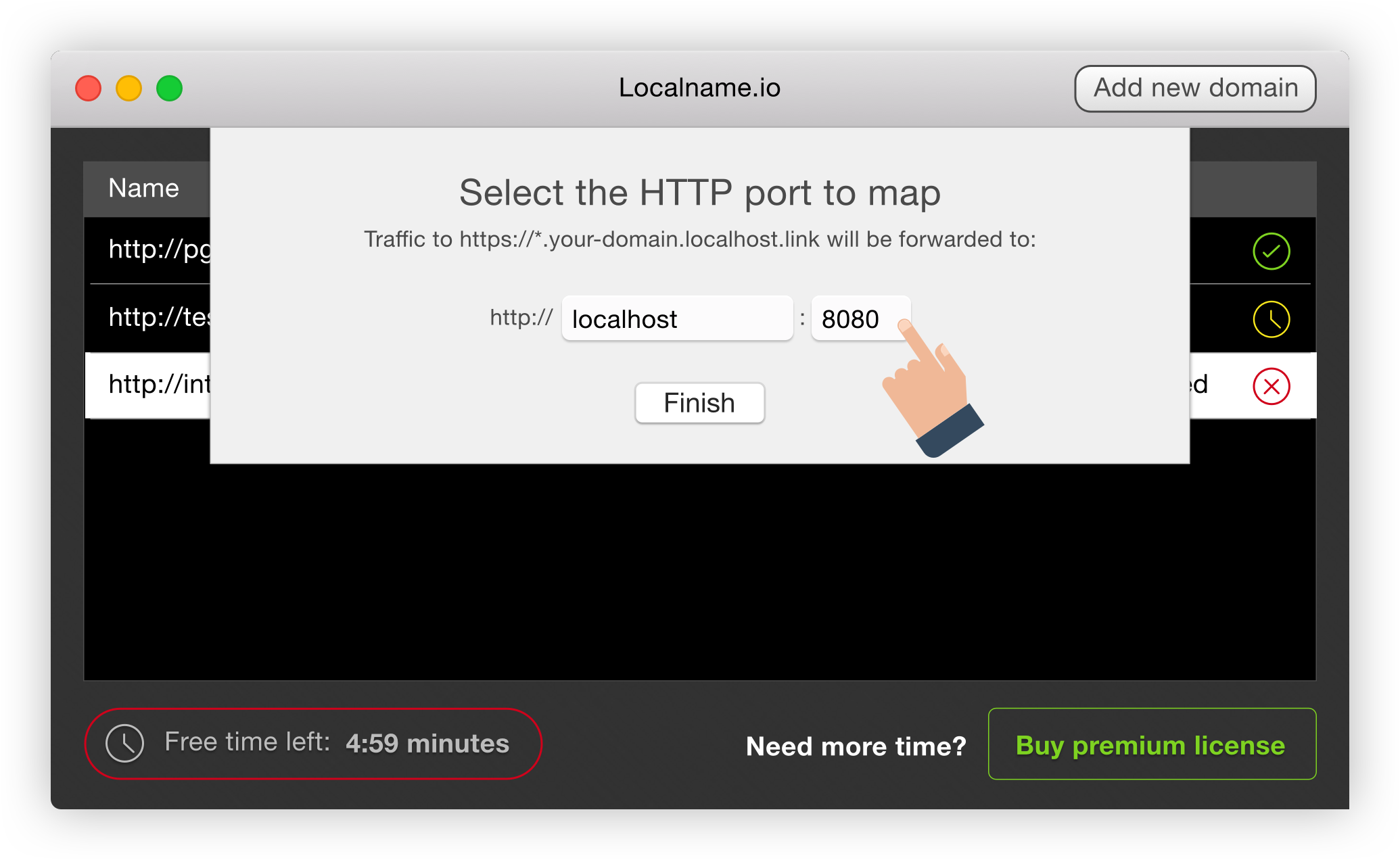 Provide Access to Your Local Development Server No longer fiddle with router configurations, IP's or ports. Localname provides a single URL that just works. Use cases: * Live Preview: Show your work to anyone. Get instant feedback from your designer, client, tester or project manager. No source control (such as Git) or deployments required. * Mobile App Testing: Test your mobile app backend from a real device without having to fiddle with local network configurations. * Webhooks: Implement webhooks by providing a real callback URL to your development machine. * Remote Debugging: Localname is great for live demos and debugging sessions whilst on a conference call.