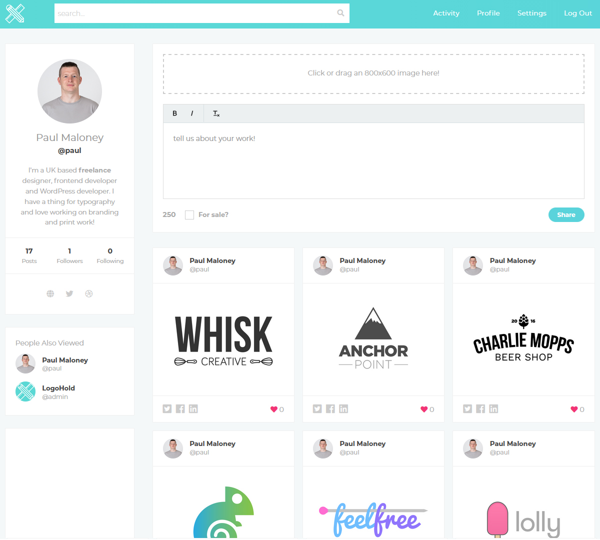 LogoHold is the place to share your logo and branding work. It has been created to help designers showcase their logos and branding and seek feedback on their work, help other designers and even sell their work.