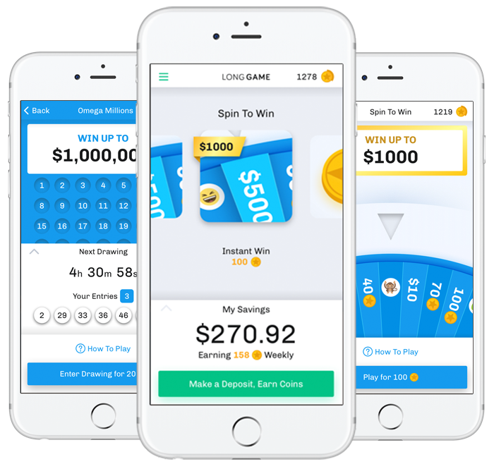 The Fun & Rewarding Savings Account Long Game is the new personal finance app that makes smart money decisions fun and rewarding. HOW IT WORKS - Download the app and create an account - Securely link your bank to get 300 Bonus Coins. - Use Coins in the App to play fun games and win cash prizes, up to $1,000,000 cash! - Deposit money into your new, FDIC insured Long Game Savings Account - The more you save, the more Coins you get - As fun and rewarding as the lottery, and you'll NEVER LOSE ANY MONEY! - Earn 0.1% interest, up to 10x the interest of standard banks
