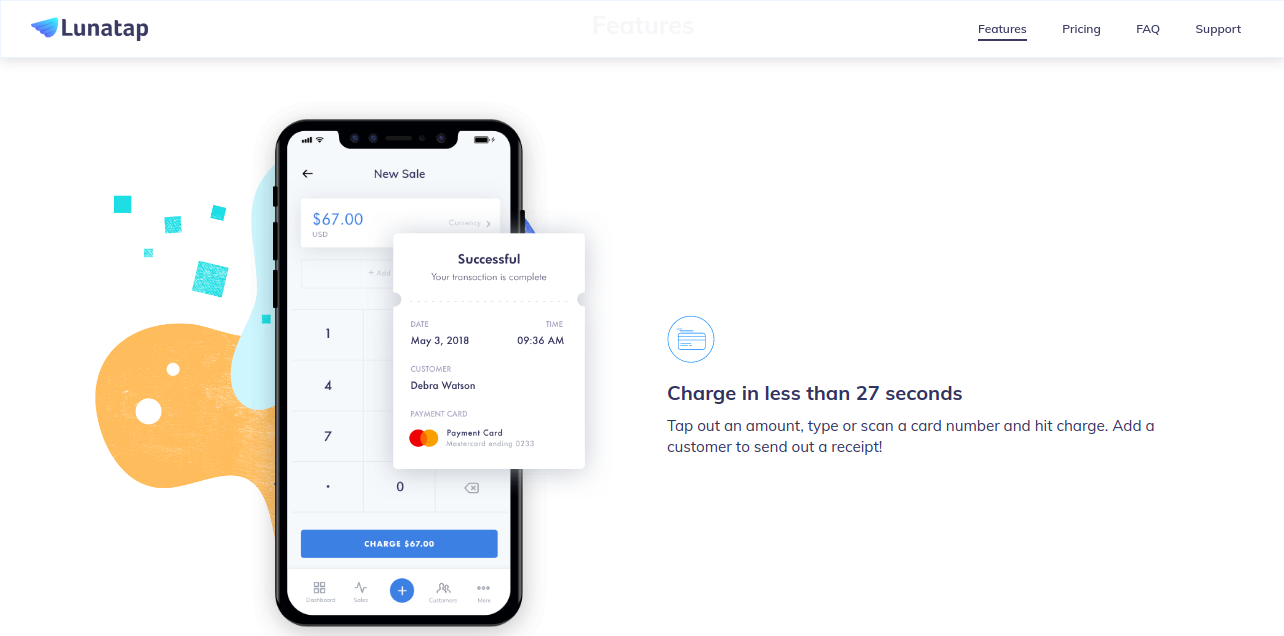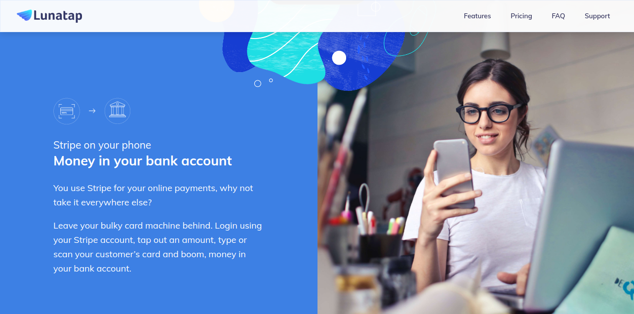 -Charge in less than 27 seconds Tap out an amount, type or scan a card number and hit charge. Add a customer to send out a receipt! -Use Your Existing Stripe Account You already work with the best payment platform on the planet, which means there’s nothing more that you need to do. Sign in with your Stripe account and you’re up and running! -Zero monthly fees, minimums or subscriptions Lunatap takes a really tiny fee of 0.1% on every charge. That’s only 10 cents on every $100 charge. There are no setup fees, no monthly charges, no minimums and absolutely nothing else on top! -Type or Scan Tap in a card number or scan a card using your smartphone’s built in camera. It’s completely private and 100% secure, we promise. -Multi Currency Lunatap supports all of the more than 135 currencies that Stripe supports. Charge customers in their native currency, get paid in yours. -A Tiny POS in Your Pocket