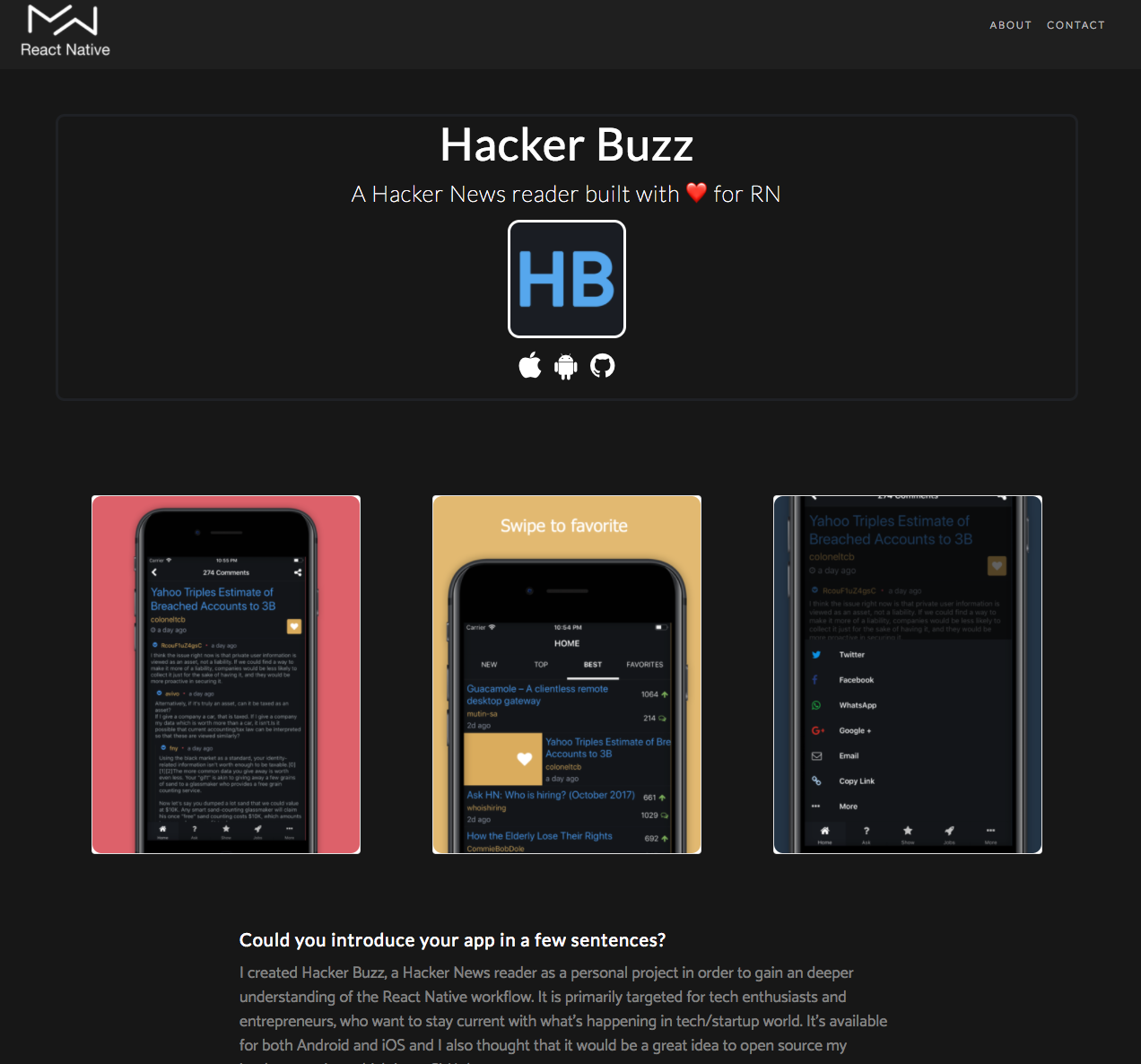 Showcasing apps made with React Native and interviewing teams and developers who have made them.