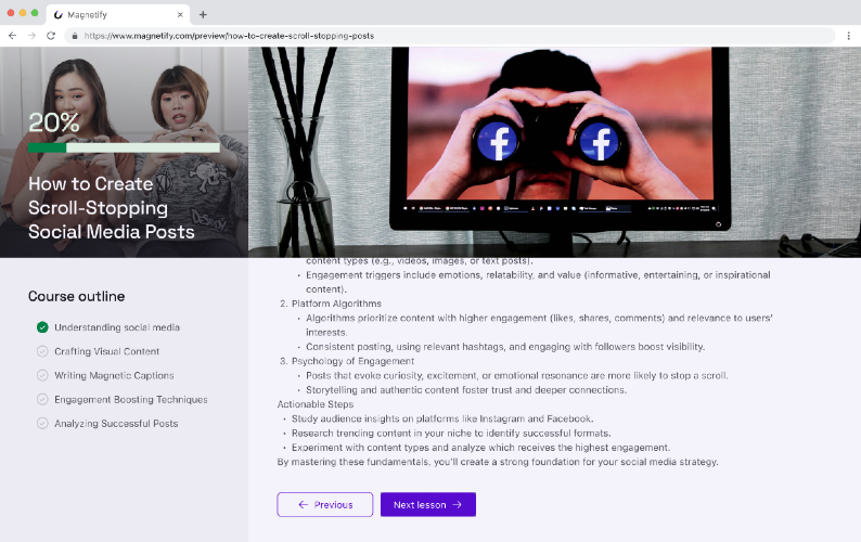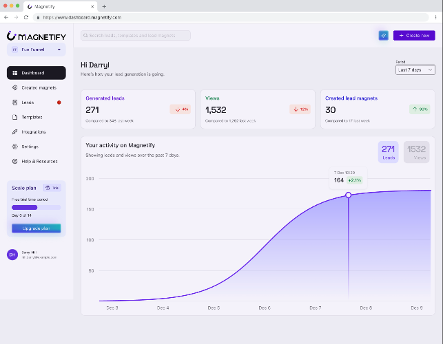 Magnetify is the all-in-one lead generation tool that turns your expertise into irresistible lead magnets. Whether you're a coach, consultant, course creator, or entrepreneur, Magnetify helps you create professional ebooks, engaging mini-courses, and high-converting lead pages without needing design skills or technical know-how. Think of it as your personal lead magnet factory. Instead of spending weeks wrestling with design software or hiring expensive freelancers, you can create polished, professional content that captures emails and builds your audience in minutes. The platform handles everything – from practical templates with helpful placeholders that guide you through the process to hosting your lead pages – so you can focus on what you do best: serving your audience and growing your business. Magnetify isn’t just about creating pretty lead magnets. It's about turning your audience into engaged subscribers who actually want to hear from you, no matter where you connect with them. Every lead magnet you create becomes a 24/7 sales assistant, working to grow your email list while you sleep. Whether you’re just starting out and need your first lead magnet or you’re scaling up and want to create multiple high-converting assets quickly, Magnetify gives you the tools to build a thriving email list that drives real business growth.
