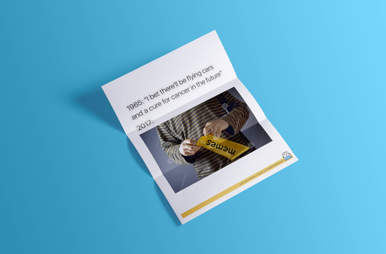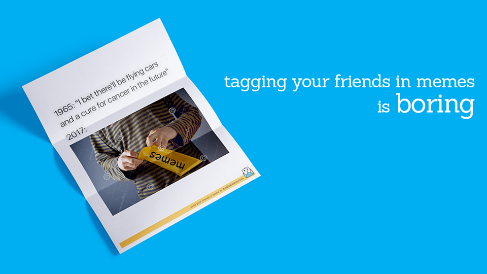 1. Choose your meme Upload your own meme or let us pick a random one for you! 2. We'll print and mail it Your meme in physical form, and sent anywhere in the world. 3. They laugh The meme arrives at their door, bringing immense happiness to their life.