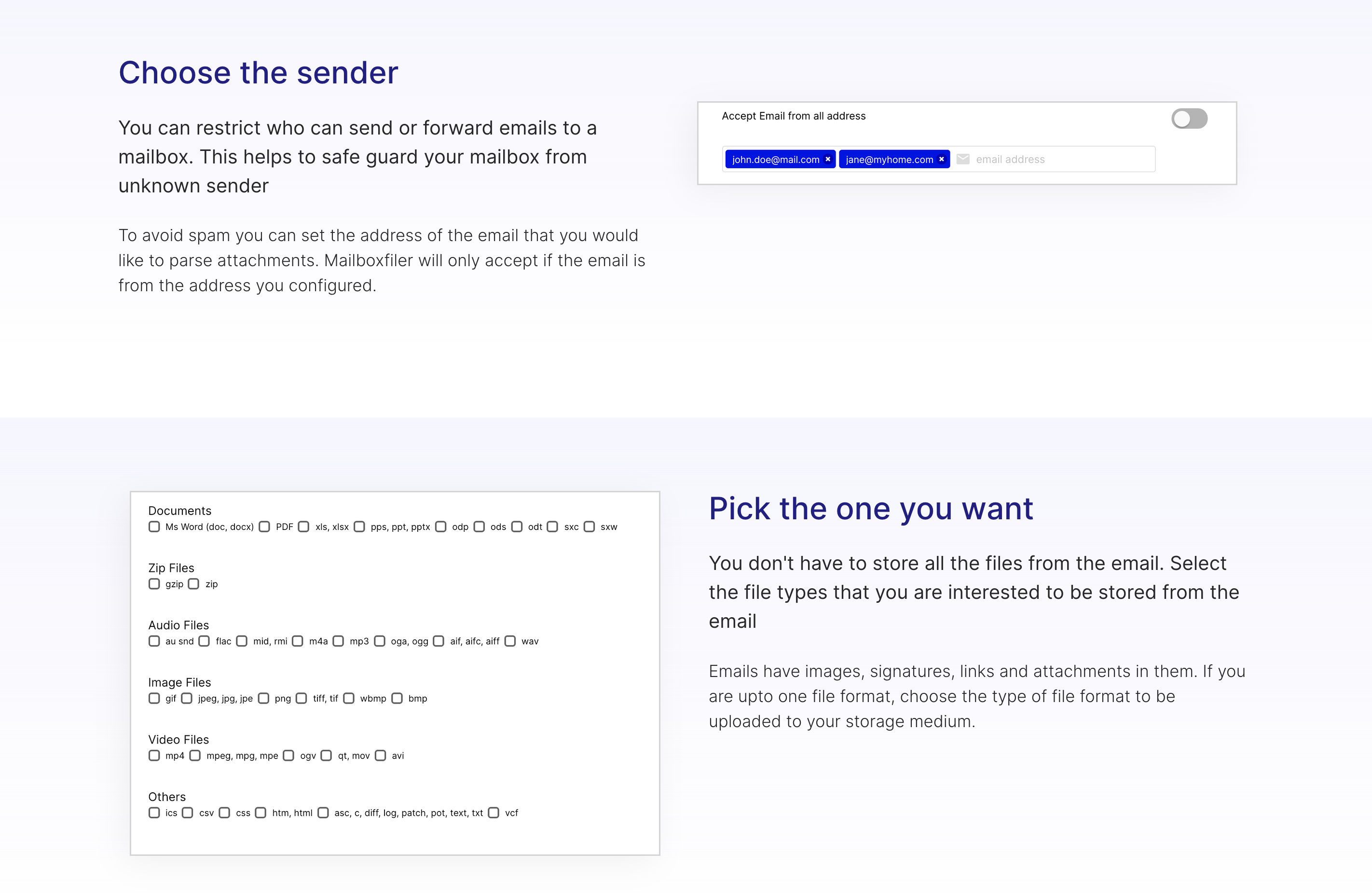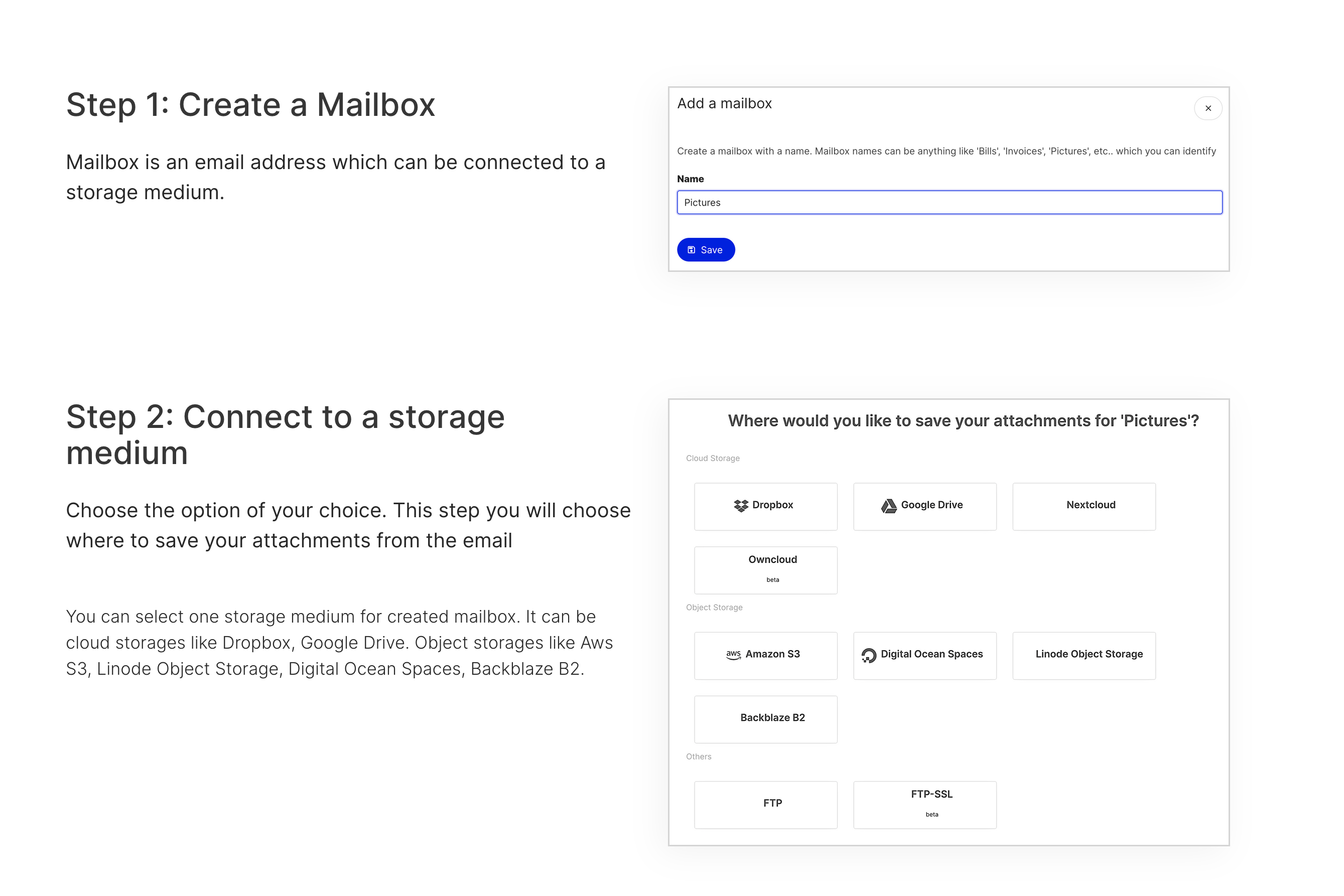Mailboxfiler helps you upload email attachments to multiple storage medium.