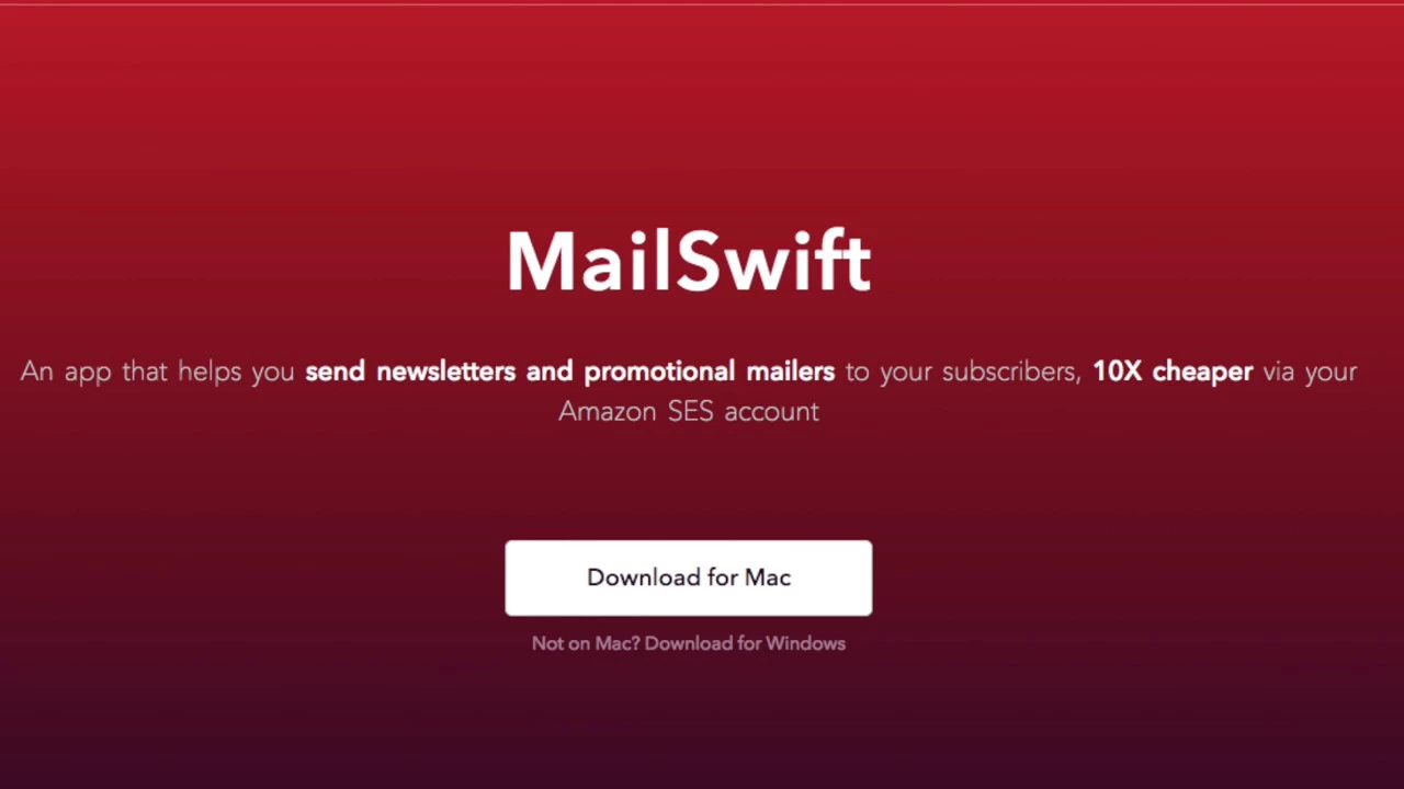 MailSwift helps you send newsletters and personalized promotions using Amazon SES with zero coding efforts. You can also clean your subscriber list by weeding out invalid, duplicate and disposable emails at no additional cost. Start tracking campaign analytics, improving email deliverability and securing domain reputation at a fraction of your current email marketing budget using MailSwift
