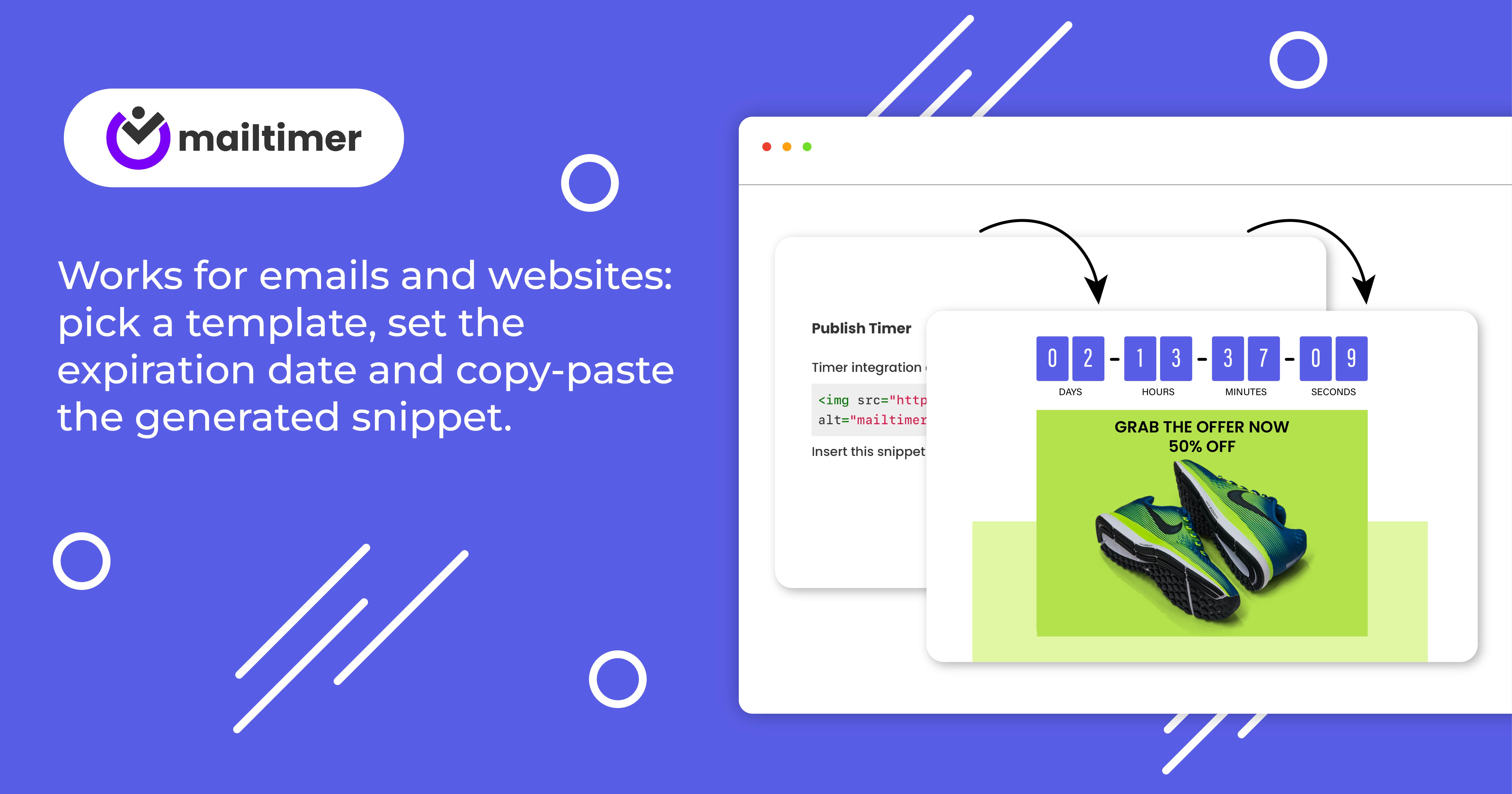 Eye-catching countdown timers. Boost your sales, conversions and clickthrough rates. Create customized countdown timers for your marketing emails and websites.