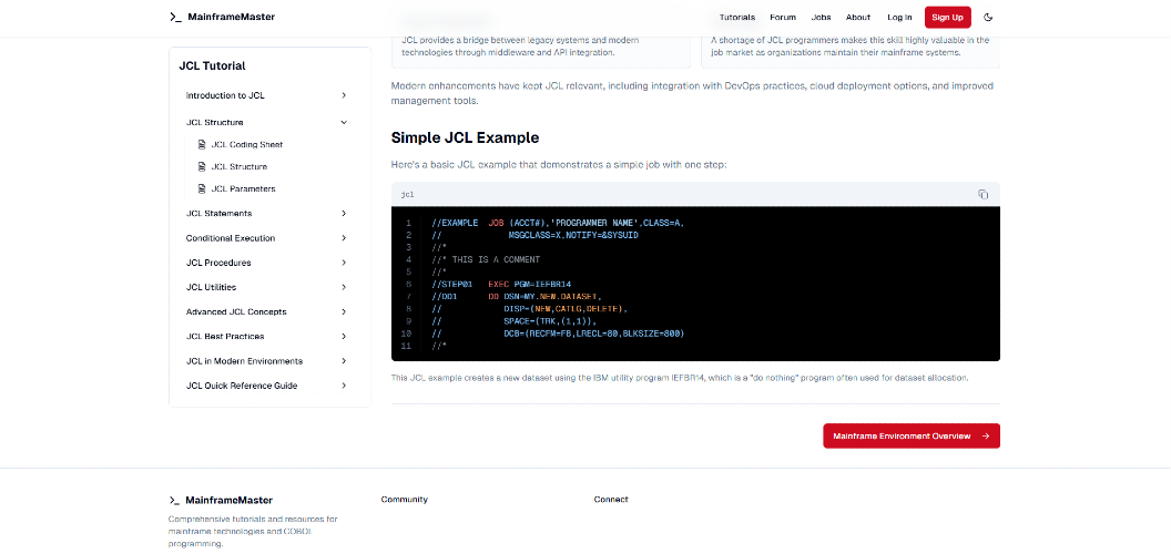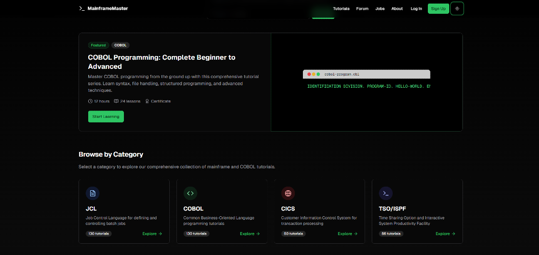 MainframeMaster.com is an educational website dedicated to teaching COBOL and enterprise mainframe technologies through clear, practical, and structured tutorials. Despite being the backbone of global banking, insurance, government, and large-scale enterprise systems, mainframe technology remains difficult to learn. Documentation is often fragmented, outdated, or written for experienced professionals rather than beginners. As a result, new developers struggle to enter the field, and organisations face a growing skills gap as experienced mainframe engineers retire. Mainframe Master solves this problem by providing approachable, well-organised learning content focused on real-world mainframe development. The site breaks down complex topics into easy-to-follow explanations, examples, and learning paths that guide users from fundamentals to more advanced concepts. What Mainframe Master Cover COBOL programming, from core syntax to practical examples JCL (Job Control Language) for batch processing TSO/ISPF usage and navigation CICS concepts, commands, and transaction processing Mainframe fundamentals, terminology, and workflows Common tools and practices used in enterprise environments The content is designed to reflect how mainframes are actually used in production systems, not just theoretical explanations. Who It’s For Mainframe Master is built for: Beginners with no prior mainframe experience Students and graduates exploring enterprise computing careers Developers transitioning into COBOL or mainframe roles IT professionals refreshing or expanding legacy system knowledge Organisations looking to upskill junior mainframe staff Why It Matters Mainframe systems continue to run some of the world’s most critical workloads, yet learning resources have not kept pace with modern expectations. Mainframe Master aims to preserve institutional knowledge while making it accessible to a new generation of developers. By lowering the barrier to entry and providing structured, practical guidance, Mainframe Master helps ensure that COBOL and mainframe expertise remains sustainable, relevant, and transferable in today’s technology landscape.