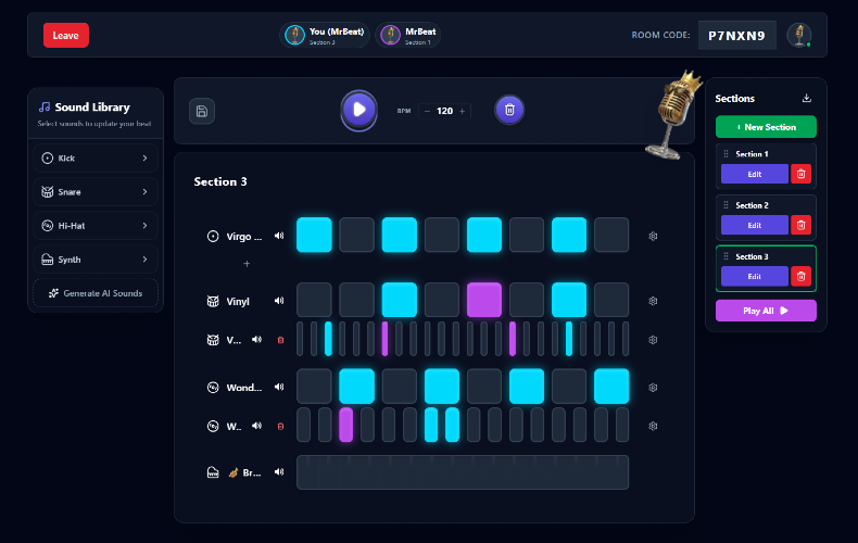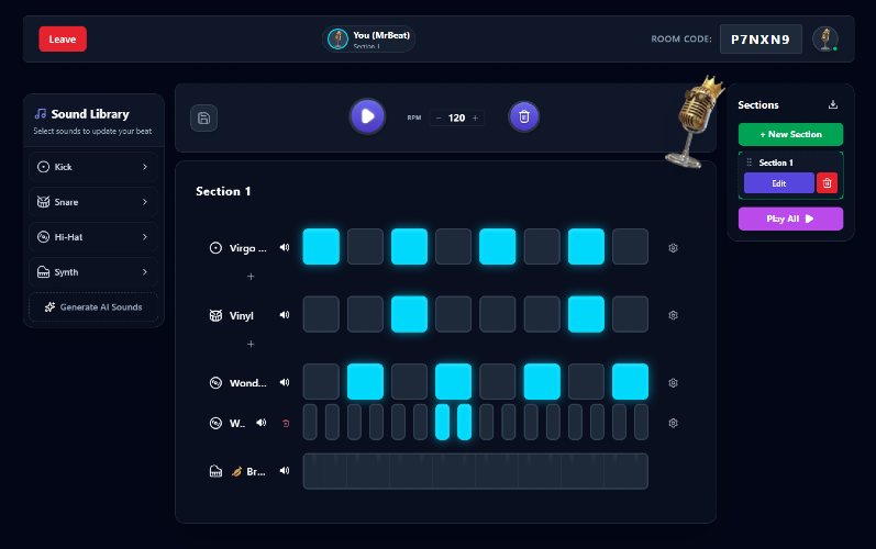 Make-a-Beat is a free, collaborative web-based music production tool designed to remove the barriers to creativity ("DAW fatigue"). It allows users to create beats instantly in the browser without any login, installation, or ads. The platform features a classic step sequencer, real-time multiplayer sync for jamming with friends, and an AI sample generator powered. Uniquely, it also includes a gamified "Rap Score" feature that uses audio analysis to rate a user's rhythmic flow against the beat.