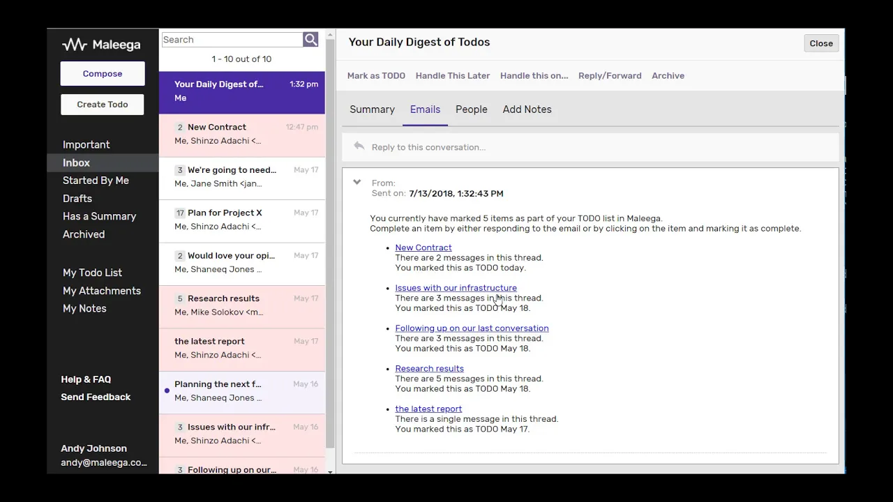 Maleega is an email client designed to work around how you think instead of forcing you to think around how a piece of technology works. The features are designed around making tedious practices like Inbox Zero unnecessary. There are also features around treating your email like a Todo list, keeping personal notes, convenient ways to manage attachments, and more.