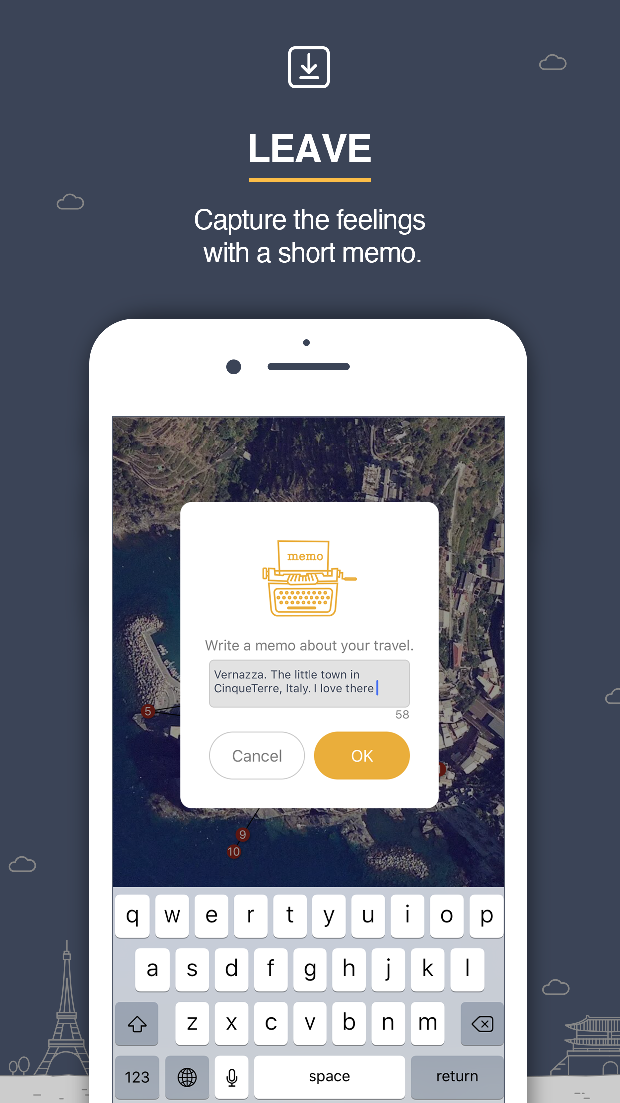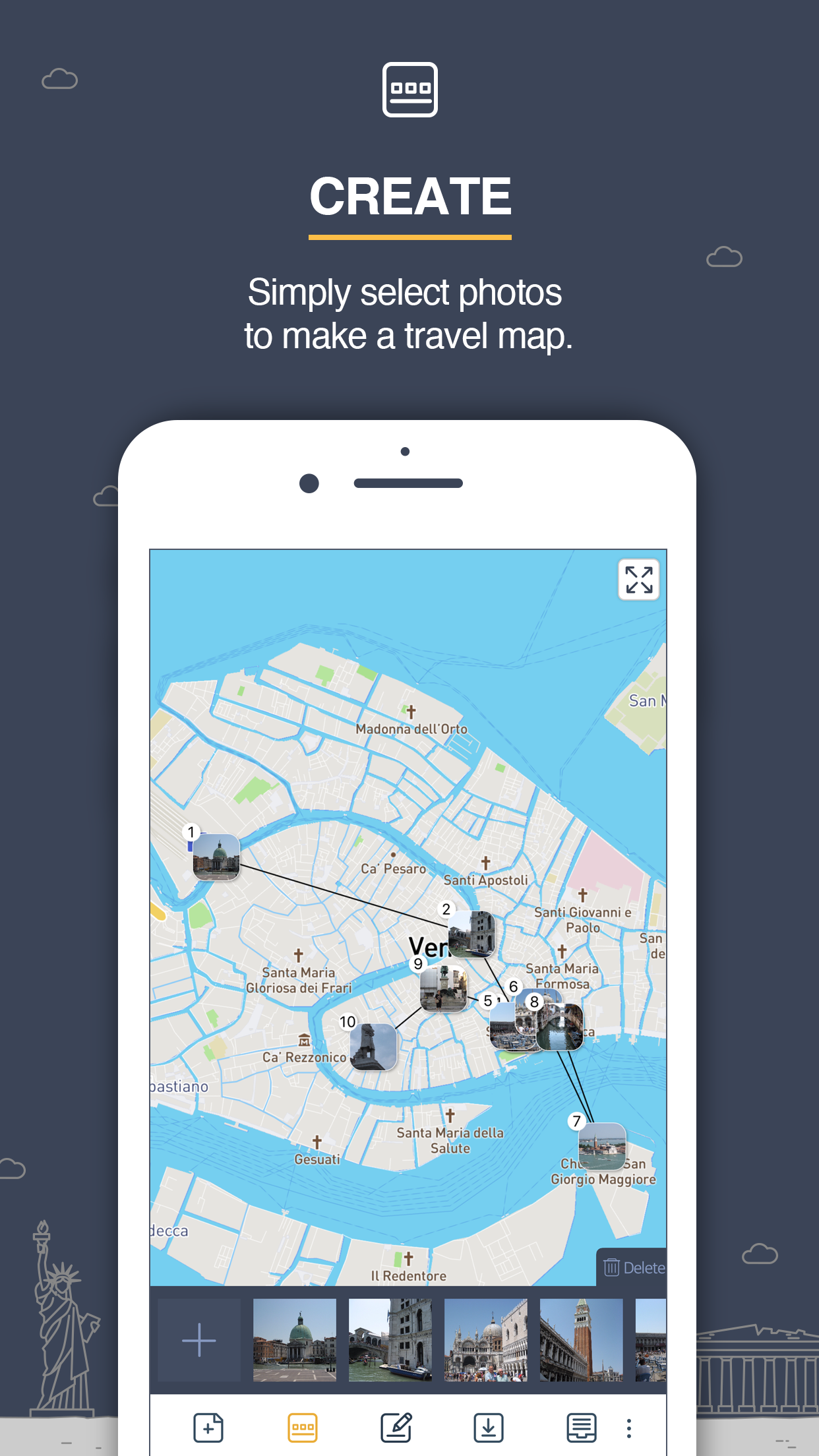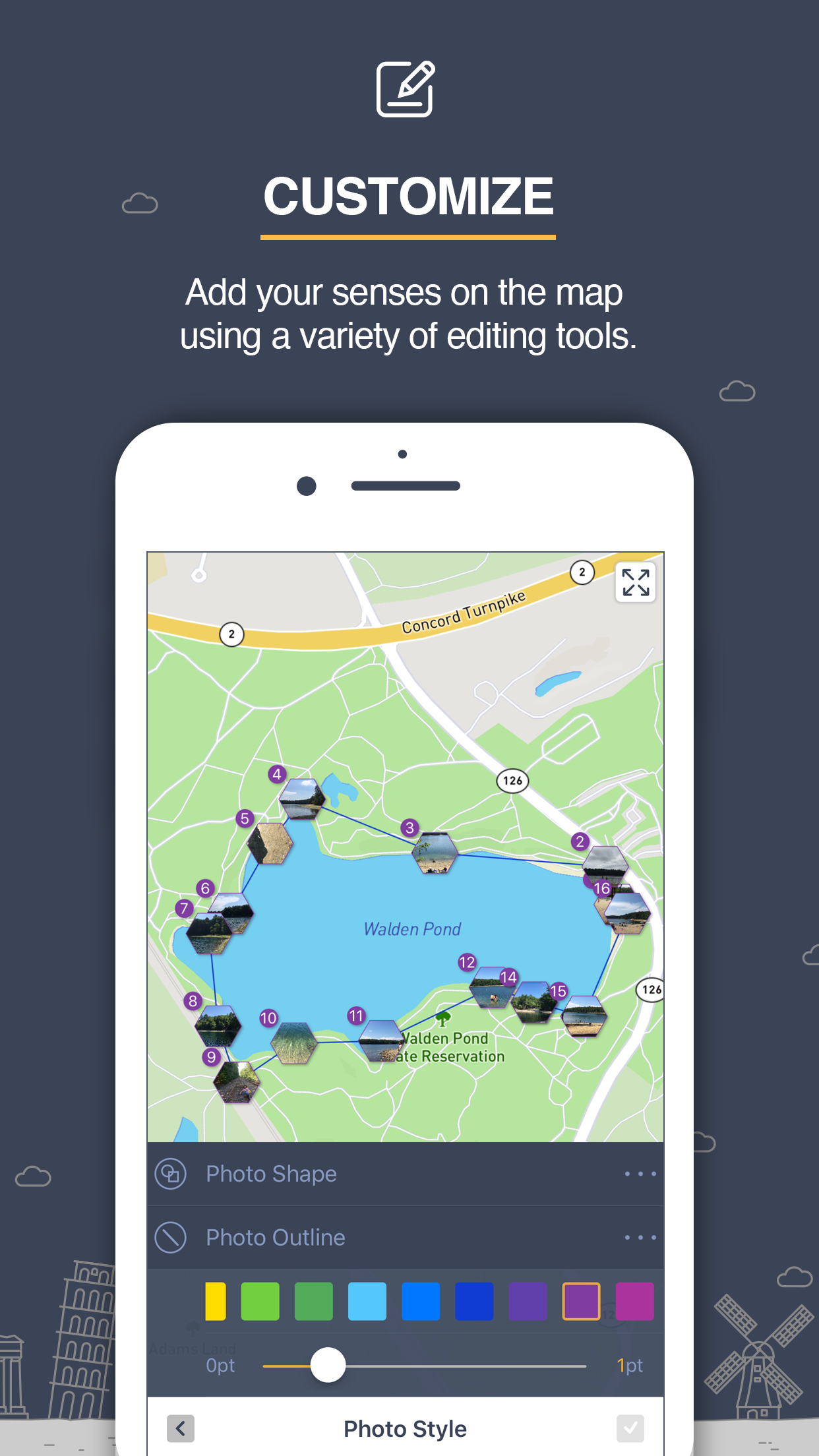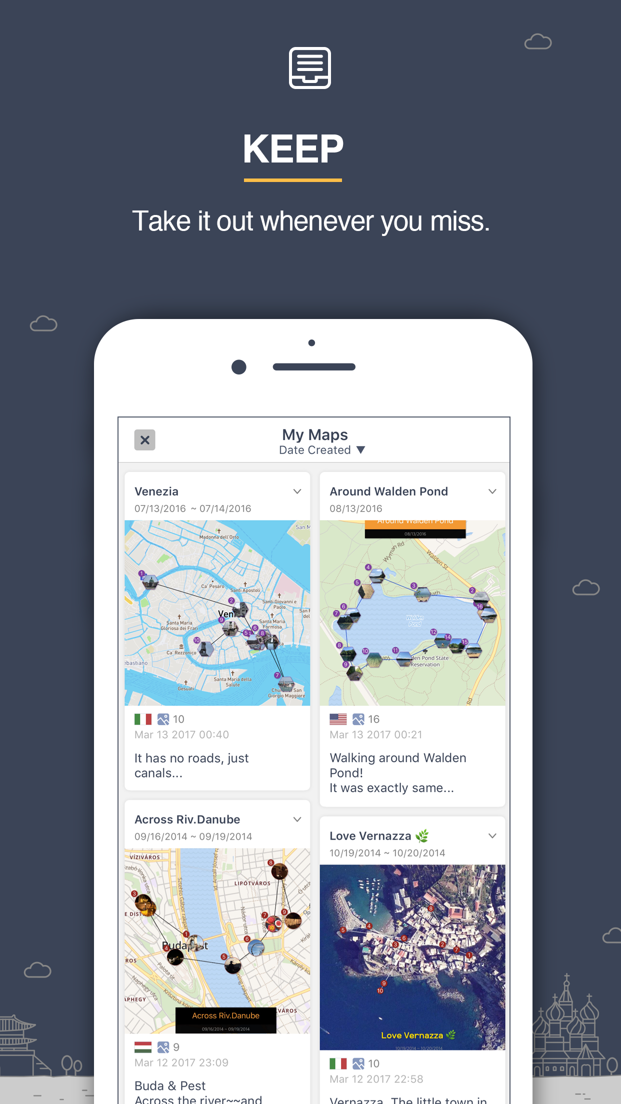 It is also meaningful to recall your trip as much as you travel. But sometimes, we forgot the valuable times. but, Don't worry anymore. Here is maptales for you. maptales is a simple and wonderful way to keep track your trip memories - Just A Few Touches maptales is simple enough with only few touches to create a map based on photo memory board. Just select the pictures to make a photo-tagged route map. The photos will be automatically placed on the map with route - Various Editing Tools Your own customized photo travel map is available on maptales. You can edit created maps to suit your taste. 'maptales' provides editing tools for Map Style, Photo Style, Route Style and Title according to your taste. - One Trip, Two Views Travels stored in your 'MyMaps' support two modes: map view and timeline view mode. They allow you to to keep the journey in various ways. - Share Your Travels Create the photo map and share it with your friends who traveled with you.