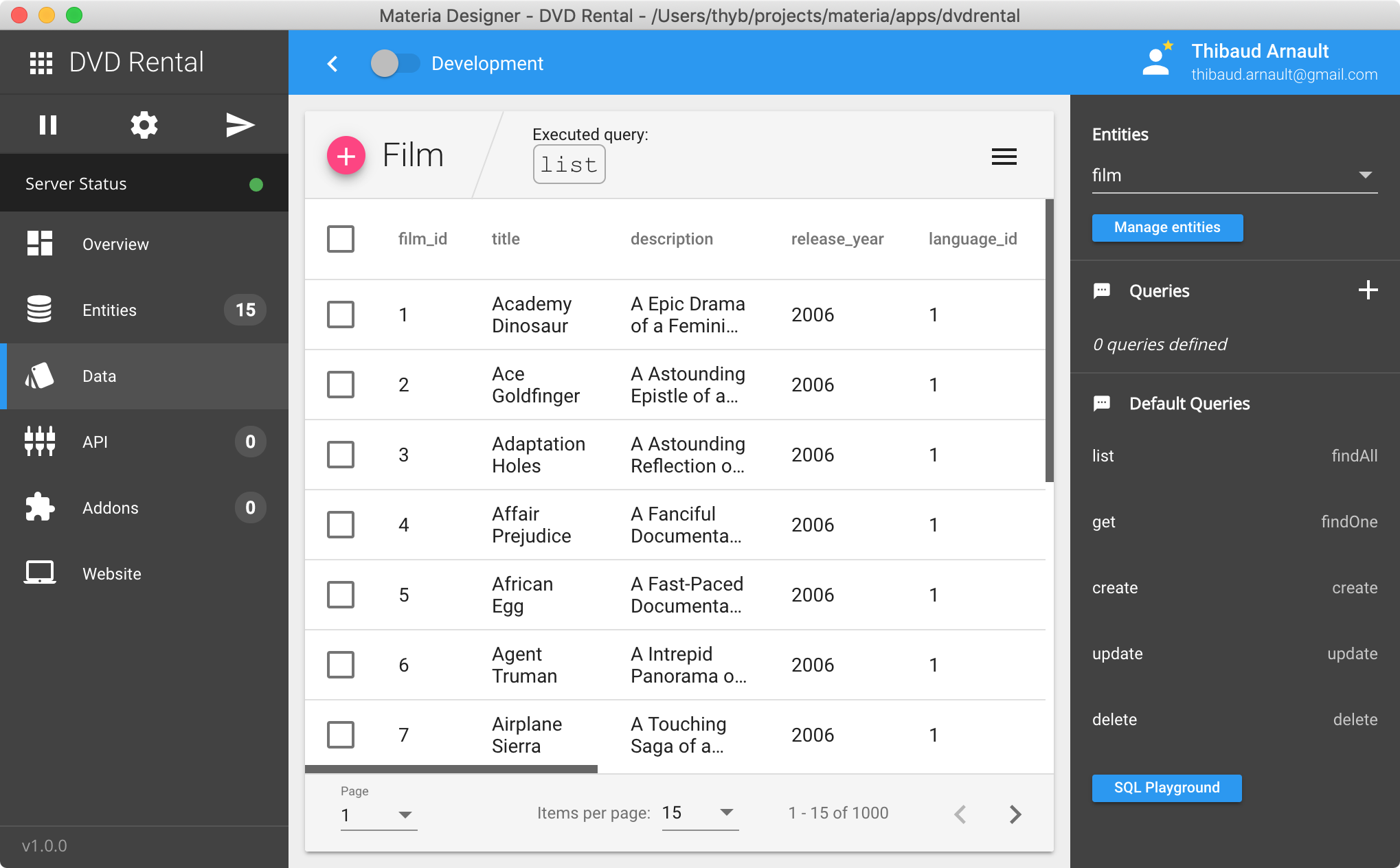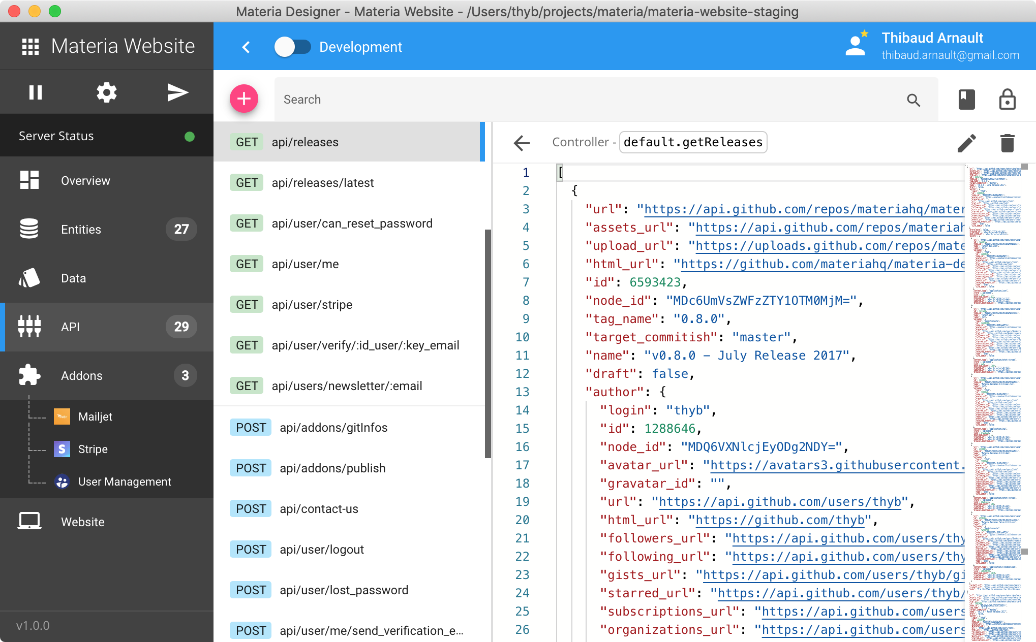 Materia is a backend builder that helps developers to create web and mobile applications easily. Infinitely extensible with your database and powerful addons (payment / emailing / user management and more).