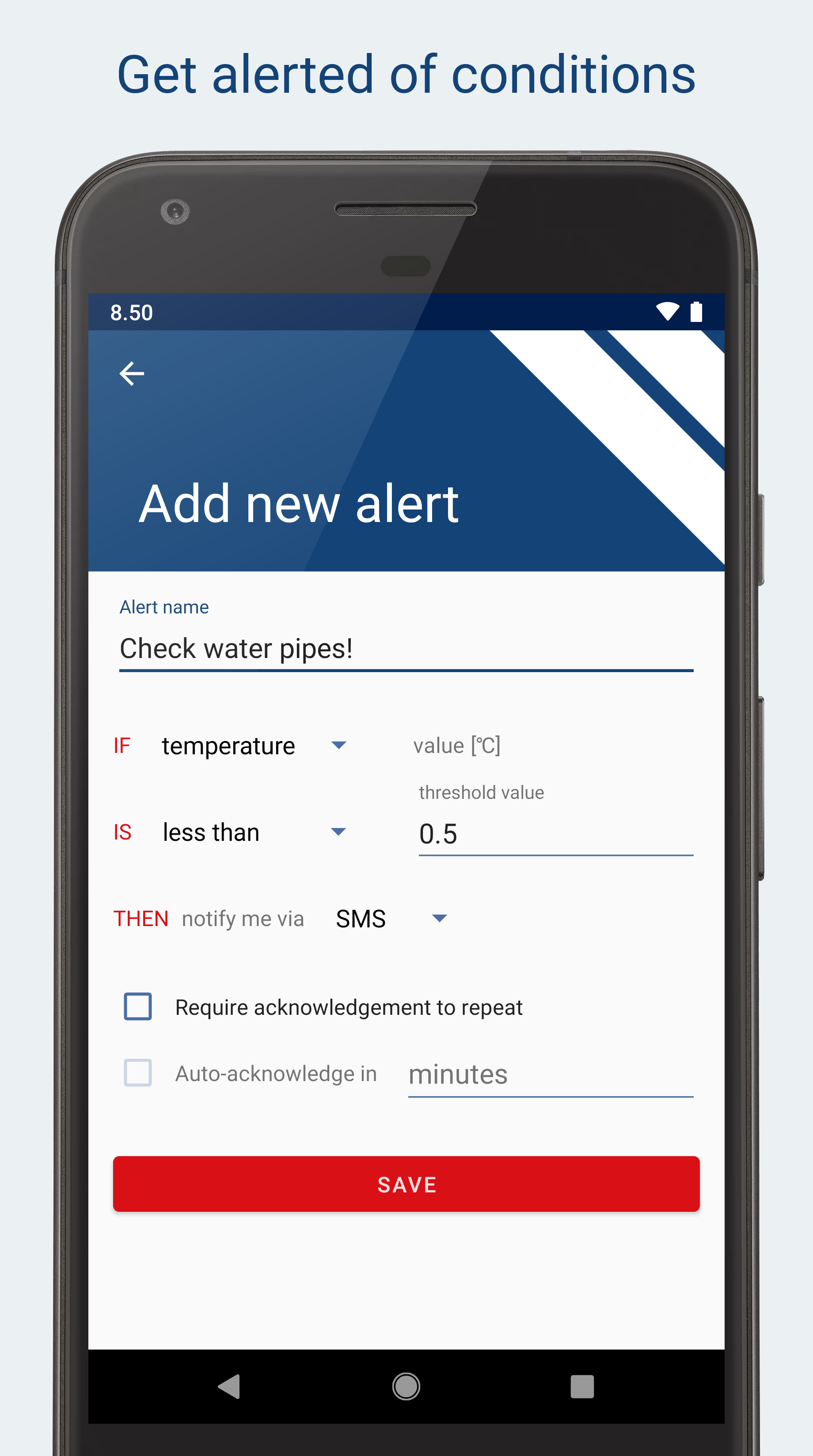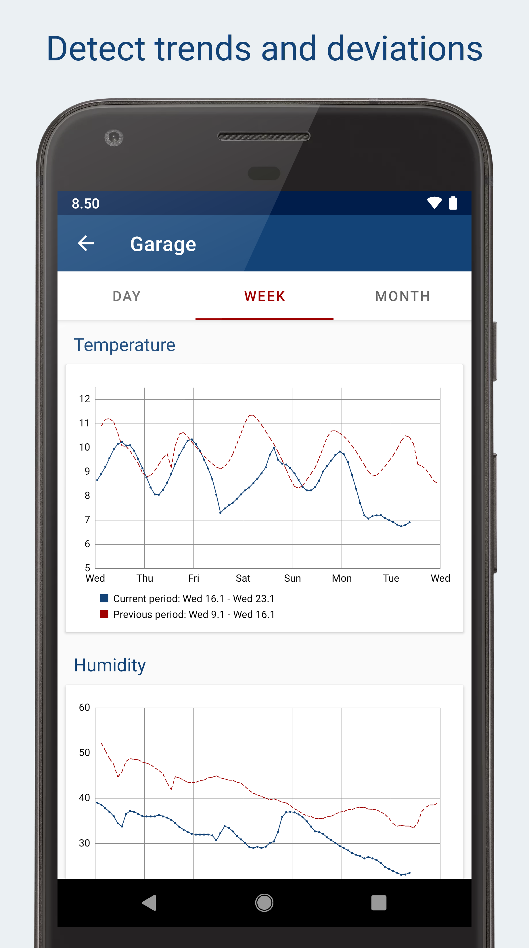 Meazurem is an easy solution for remote temperature, humidity and pressure monitoring. You can now observe the environmental conditions remotely via phone. User defined alerts (email, push, SMS) and graphs included!
