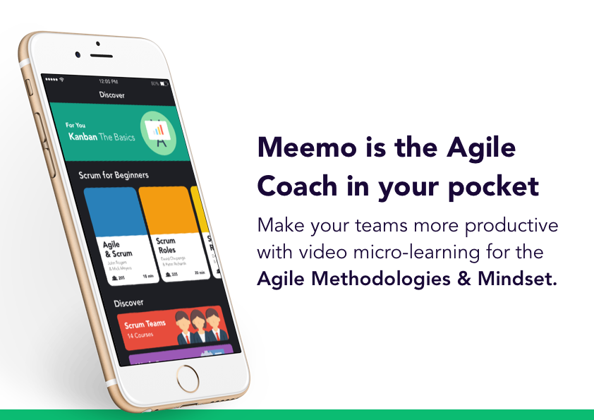 Meemo is the Agile Coach in your pocket. We are building a mobile app to help teams get more productive with curated video micro-coaching about Agile Methodologies and the Agile Mindset. We are in Private Beta - join us on joinmeemo.com and tweet us at @JoinMeemo. Looking forward to get your feedback! The Founders, Leon & Daniel