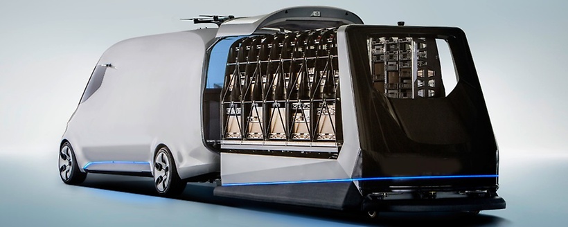Vision Van from Mercedes-Benz Vans is an integrated system, the vehicle merges a number of innovative technologies for last-mile delivery operations and thus sets the standard of performance requirements and solutions for future generations of vans. Cloud-based control software meets optimum cargo hardware Vision Van serves as the central, intelligent element in a fully connected delivery chain. The fully automated cargo space management, route planning for the vehicle and the delivery drones.They also calculate ideal delivery routes for the package deliverer. Automatic order picking takes place at the logistics centre. The intelligent cargo space management system automatically transfers packages for manual delivery to the deliverer at the delivery destination by means of a package dispenser on board the vehicle. It also performs the role of a central control unit to interlink the intelligent vehicle, the automated systems and the information relating to the delivery orders.