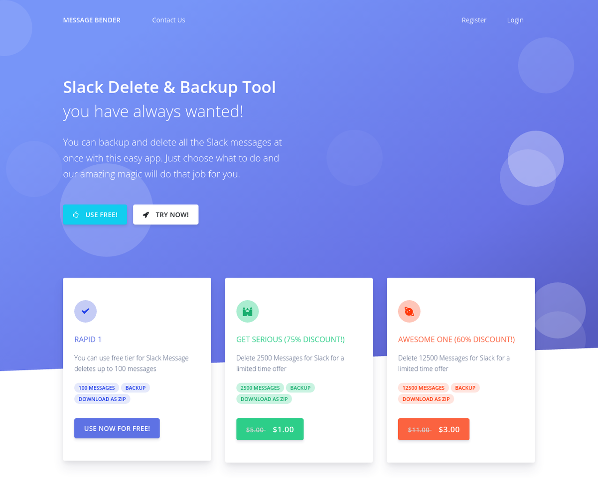Delete Slack Messages and Files from All Channels at Once and Backup Slack!, This Slack Cleaner Tool helps to delete message in bulk We are a small team in Istanbul, we mostly build in Nodejs, Laravel, or any lovely programming languages. We really love coding. Help us to get more reviews about our product. You can check our product in https://www.messagebender.com