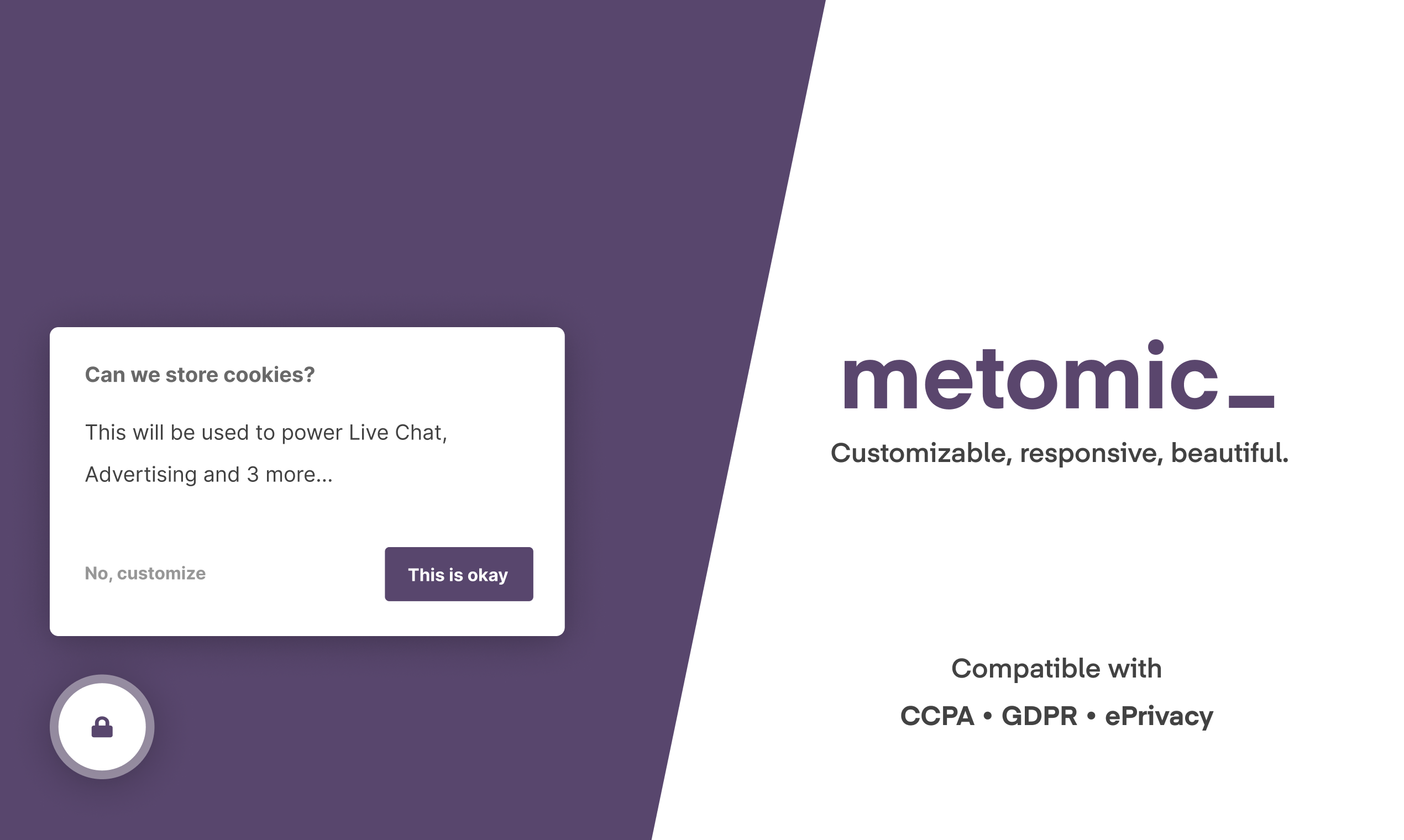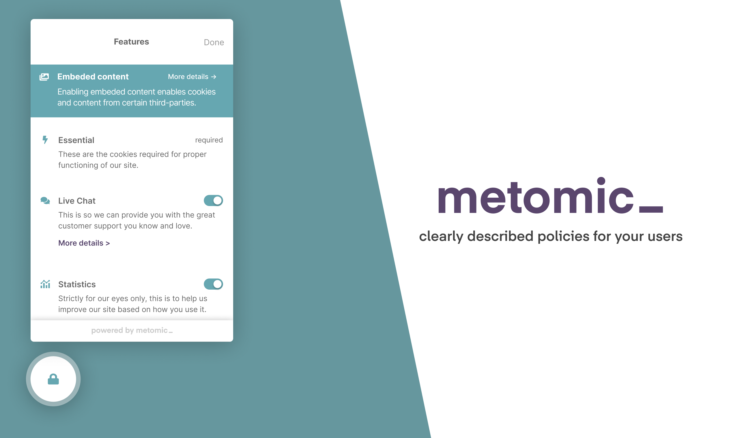 Be transparent with your users and honor their privacy - whilst respecting UX, too. Metomic is the new way to ask users for cookie consent that doesn’t sacrifice usability. A plug-and-play widget, it feels native on just about any site. All for free. Join our community Slack for the latest on the privacy industry and sneak peeks into what we're working on - https://metomic.cc/xVxa6jN