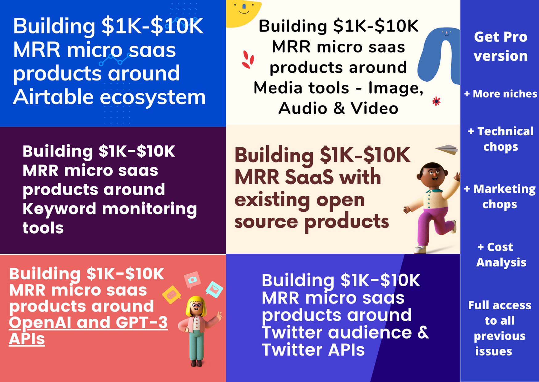 Newsletter for techies and marketers looking for their next micro saas idea. ave hundreds of hours on research and pick the best working micro saas ideas. Weekly newsletter on profitable micro saas niches with data-backed analysis and a guide on how to implement each idea.