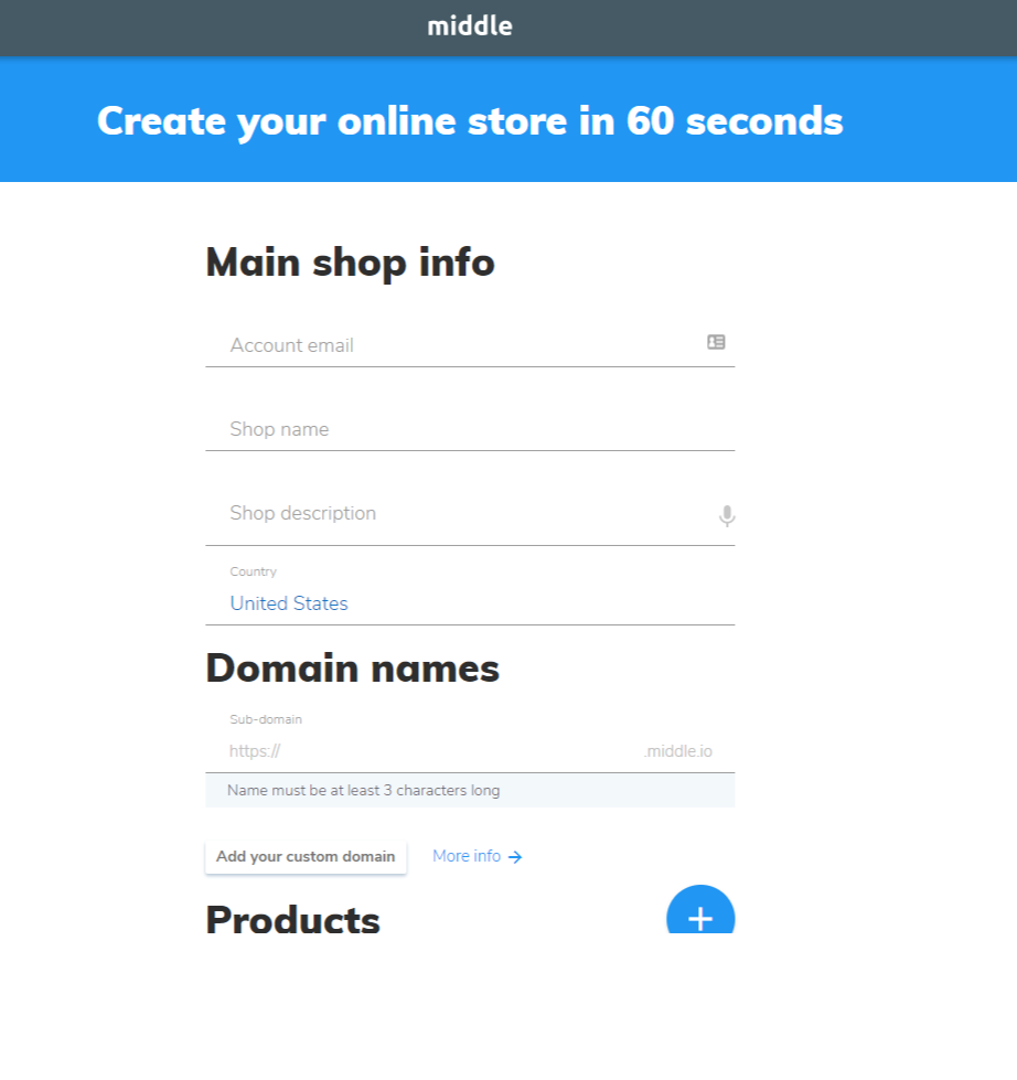 Middle is an online tool which allows you to create online shop under 60 seconds and start selling your first product or service.