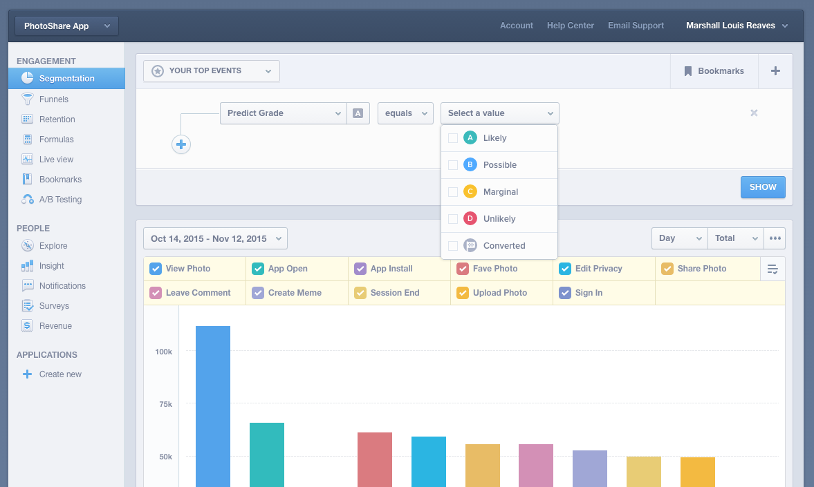 Deeply understand every user's journey with instant insights for everyone on mobile and web. -Understand every user's journey Follow the digital footprint of every user across mobile and web devices. Know precisely what happens inside your product. -Build faster with instant answers Pull up the numbers you need at a moment's notice. Experiment immediately with A/B testing and notifications. -Unlock insights for everyone Whether you're an executive, product manager, or data scientist, you have a set of tools tailored to your unique product questions.