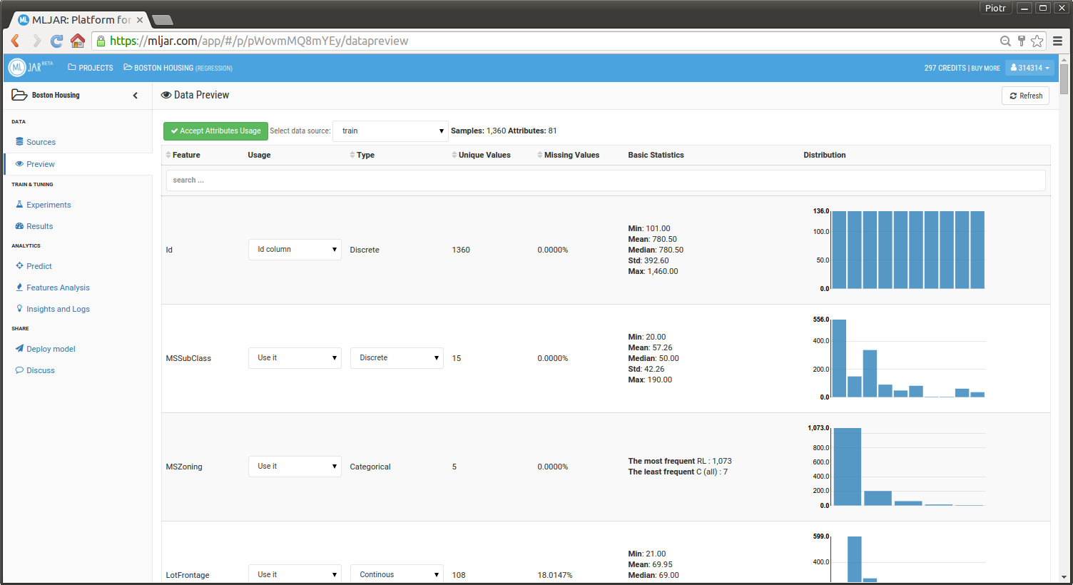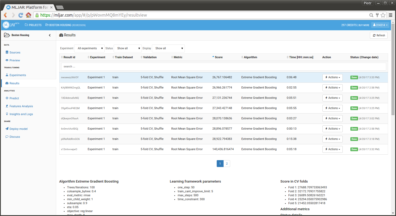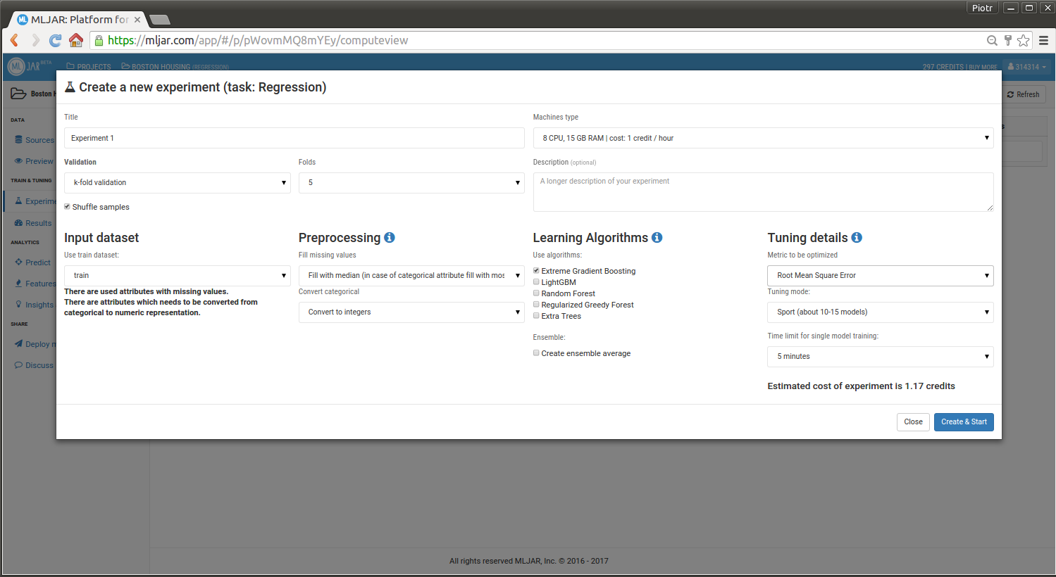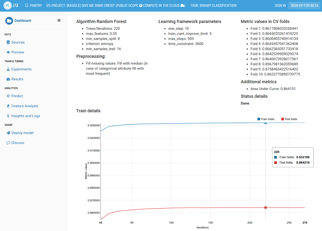 Machine Learning in your browser! MLJAR allows you to upload data set and train and tune many algorithms, like: Neural Networks (Keras+Tensorflow), Xgboost, Random Forest, LightGBM, Logistic Regression. There are free lessons in MLJAR Academy (https://mljar.com/academy) with how to learn yourself ML! It is super easy to use :)