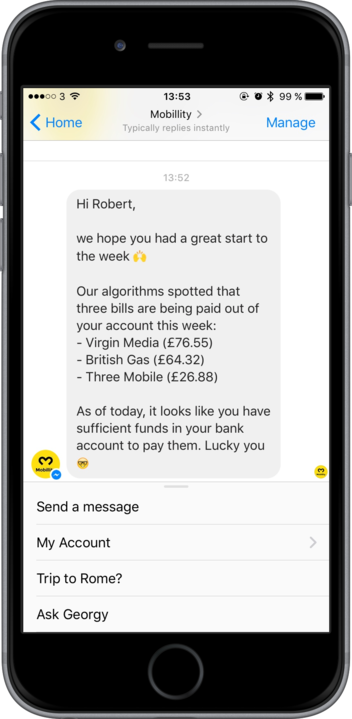 We are Mobillity, your personal savings assistant. Have you ever imagined how your life would look like if you had access to a smart financial assistant who makes sure that you can focus on what really matters in your life? How does it work? It's simple, we bring your finances in order at the tap of a button. First of all, we analyse your financial situation across all your different bank accounts to understand where things could be improved, just like an independent financial advisor. Then, based on this analysis, we suggest personalised improvement options such as starting to save for an emergency savings account, cancelling unwanted subscriptions or even saving money on your utility bills. Once you have given us the go-ahead to improve something on your behalf, we do the required paperwork for you too. So no more forms to fill out, no more annoying call centers to call. And the best thing is: Whenever you have a question or need help, there is a human at hand to help.