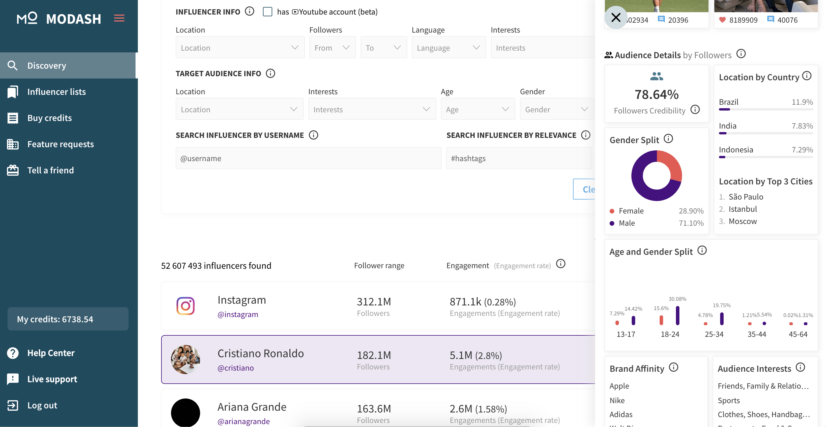Modash is a comprehensive influencer search tool with more than 50,000,000 influencers globally. Finding influencers and verifying their audiences, as well as collecting contact details is a standard part of many marketers workflow. It's painful, difficult and massively increases the cost of running influencer campaigns. Modash makes this process seamless, reliable and even fun. Find influencers globally, understand their audiences and get the details you need to run efficient influencer marketing programs.