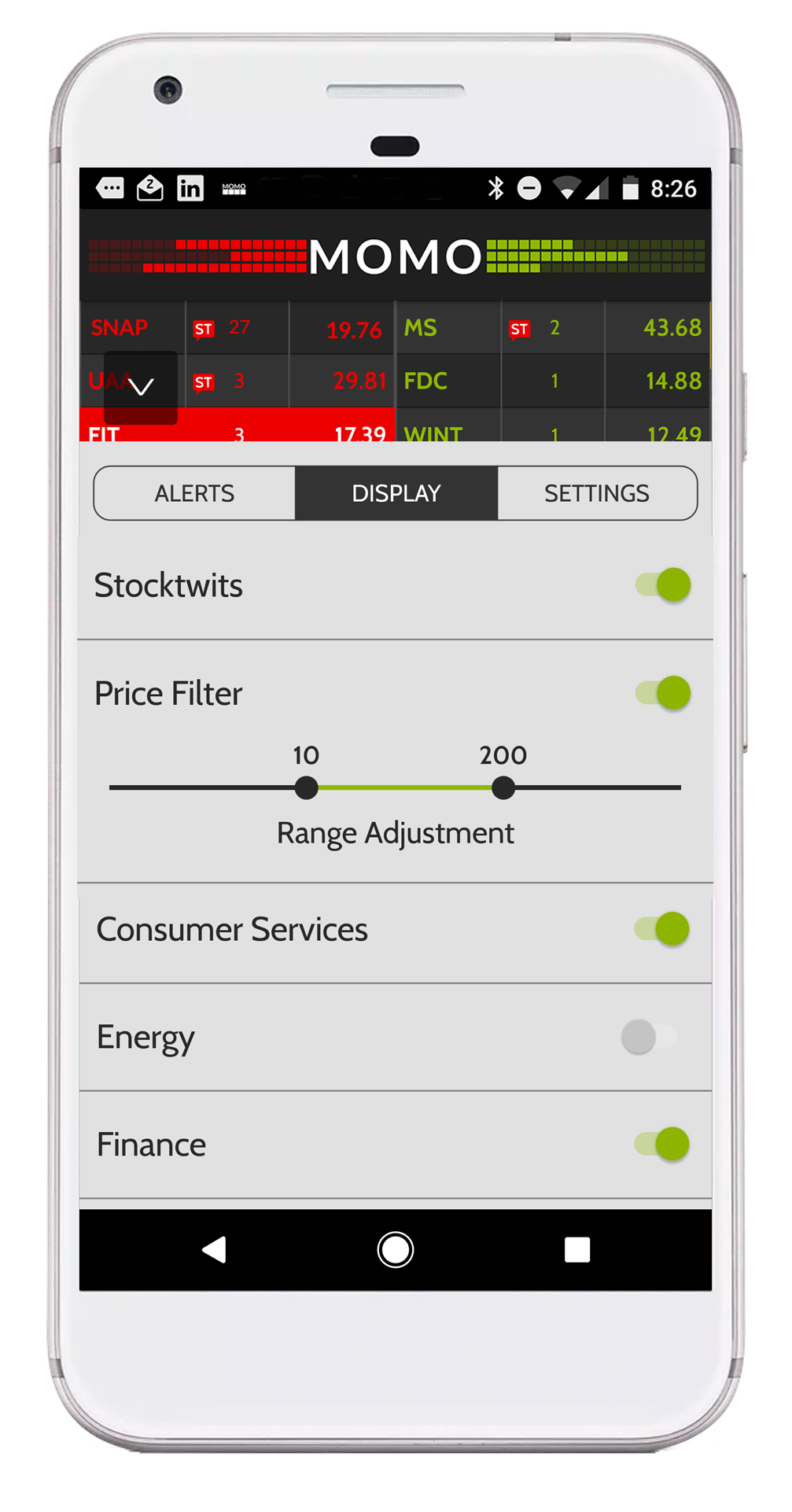 Available on both Google Play for Android devices and Apple App Store for iOS. Google Play Link: https://play.google.com/store/apps/details?id=com.mometic.momo App Store Link: https://itunes.apple.com/us/app/momo-realtime-stock-discovery-alerts/id939312137?mt=8