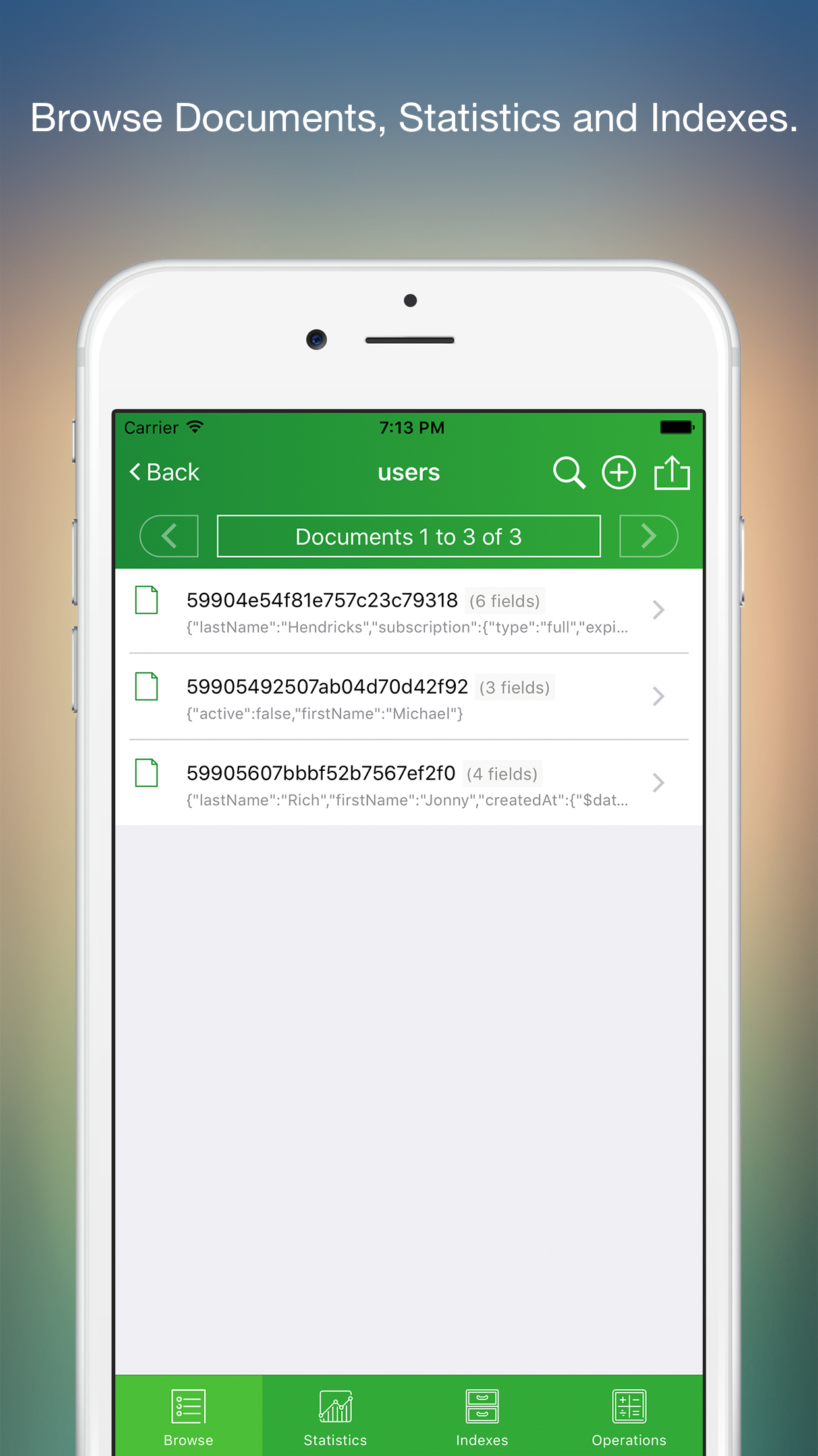 The application makes possible to browse MongoDB databases from cell phones and tablets. This app is mainly designed for software developers. Our main goal is to make possible to manage database data from a mobile device, from anywhere in the world. As well as provide a most powerful MongoDB mobile client.