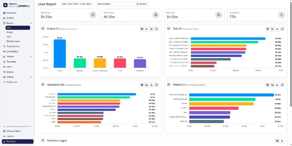 Monitoring360 is an employee monitoring software built to help businesses understand how work gets done across teams. It provides clear visibility into daily activities, productivity patterns, and performance trends—without disrupting employee workflows. The platform captures real-time work data such as application usage, activity levels, and time spent on tasks. This information is converted into easy-to-read reports that help managers identify productive hours, workload distribution, and potential inefficiencies. Monitoring360 supports better decision-making by offering insights into team performance rather than just raw tracking. Managers can view productivity summaries, analyze trends over time, and ensure work is aligned with business goals. For remote and hybrid teams, the software creates transparency and accountability while maintaining operational clarity. The system is designed with simplicity in mind. Setup is straightforward, the dashboard is intuitive, and reports are easy to interpret for both managers and team leads. Monitoring360 focuses on data accuracy and meaningful insights instead of micromanagement. By turning work activity into structured information, Monitoring360 helps organizations improve productivity, optimize processes, and build a performance-driven work culture based on clarity and trust.