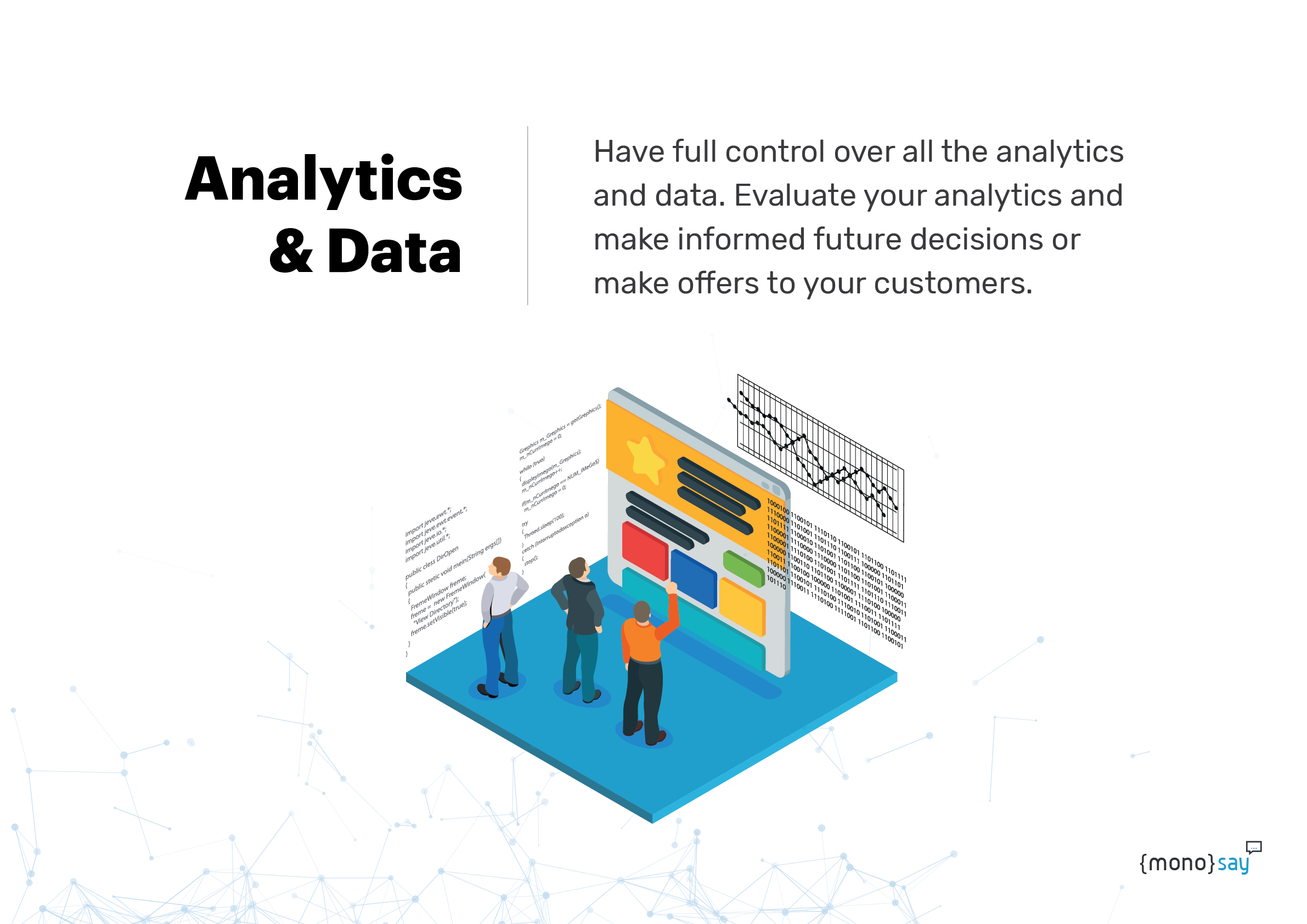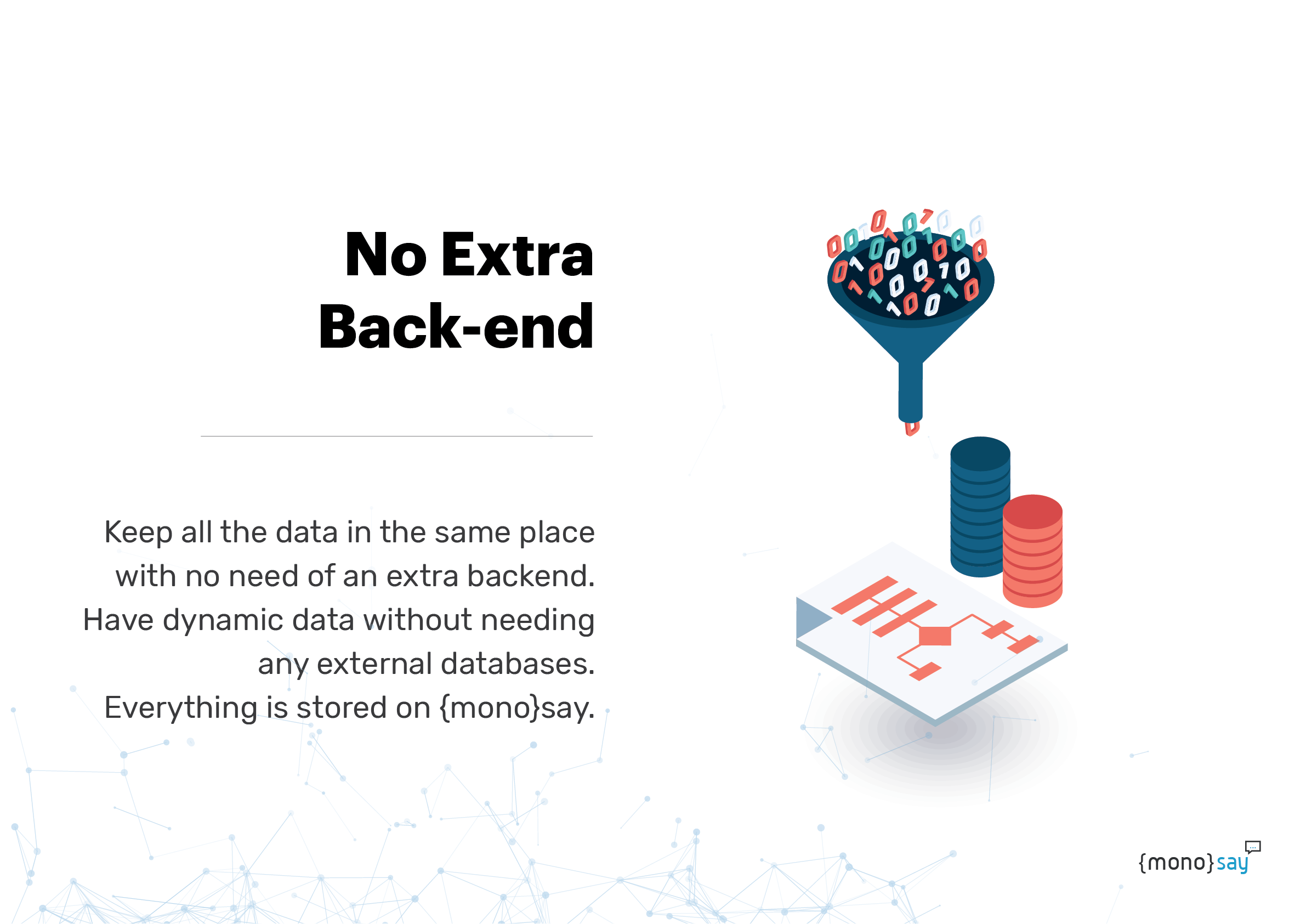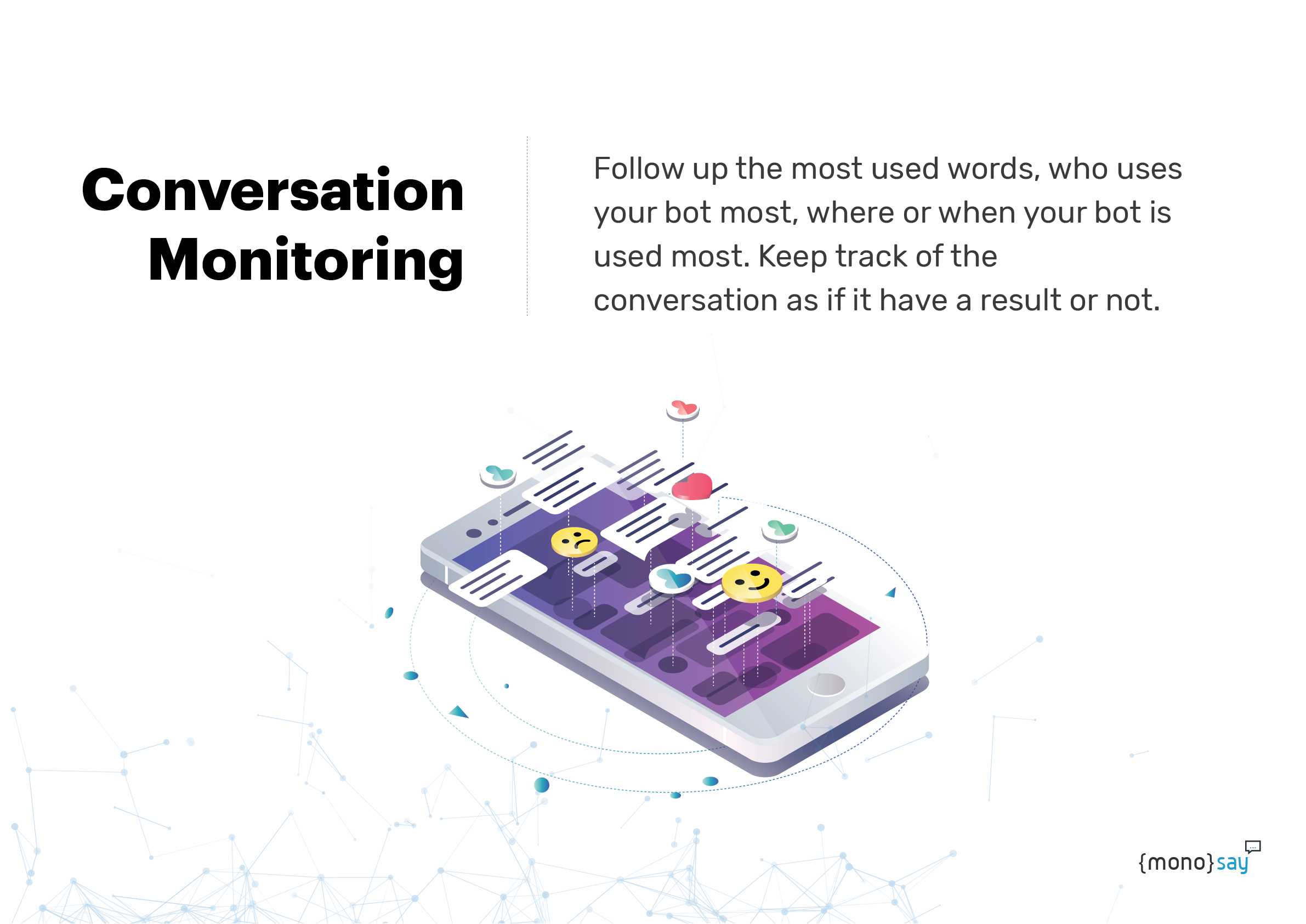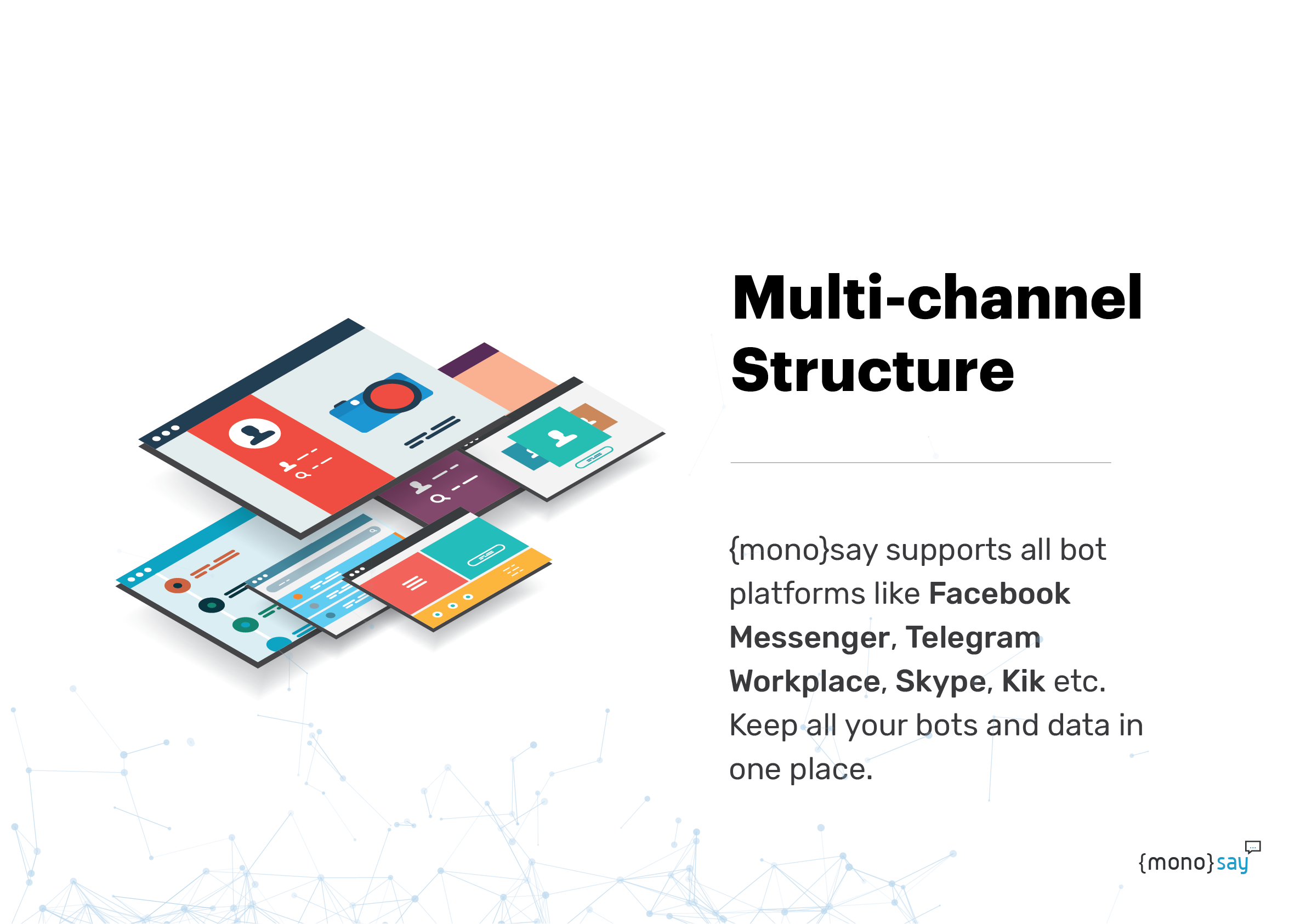 MonoSay is the centralized bot platform to manage all the conversations and flows going through your bots inside the system. You don't need a backend to store your data!