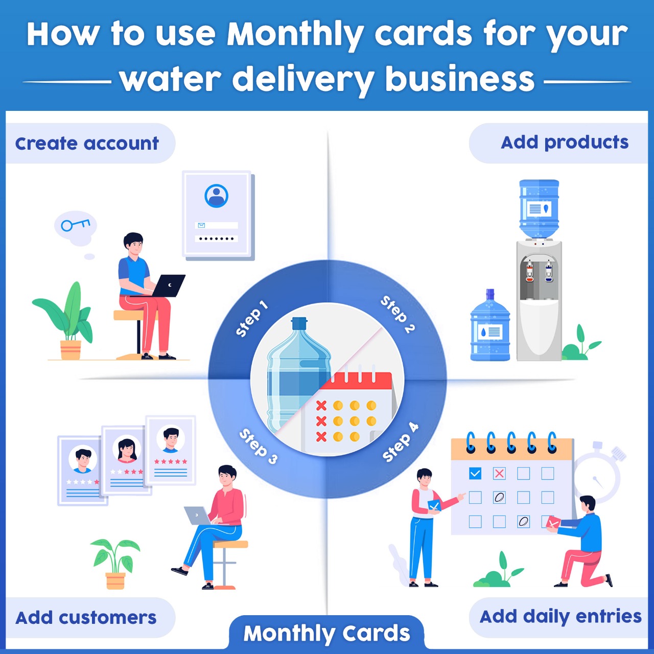 We are market place, providing simple tools to local vendors, improve their efficiency in serving their customers, and increase their businesses. Monthly cards is a local business optimization SaaS solution. We aspire to be the market hub by providing simple tools to local vendors, improving efficiency in serving their customers and upgrading the sales funnel thereby welcoming more opportunities (regional customers). Our aim is to simplify the world of both vendors and customers through technology. We propose to serve Water jar/ bottles vendors (live) Milk delivery (work in progress) Car Wash (work in progress) Tiffin service (work in progress) Commercial and domestic Gas (work in progress) Local tea sellers (work in progress)