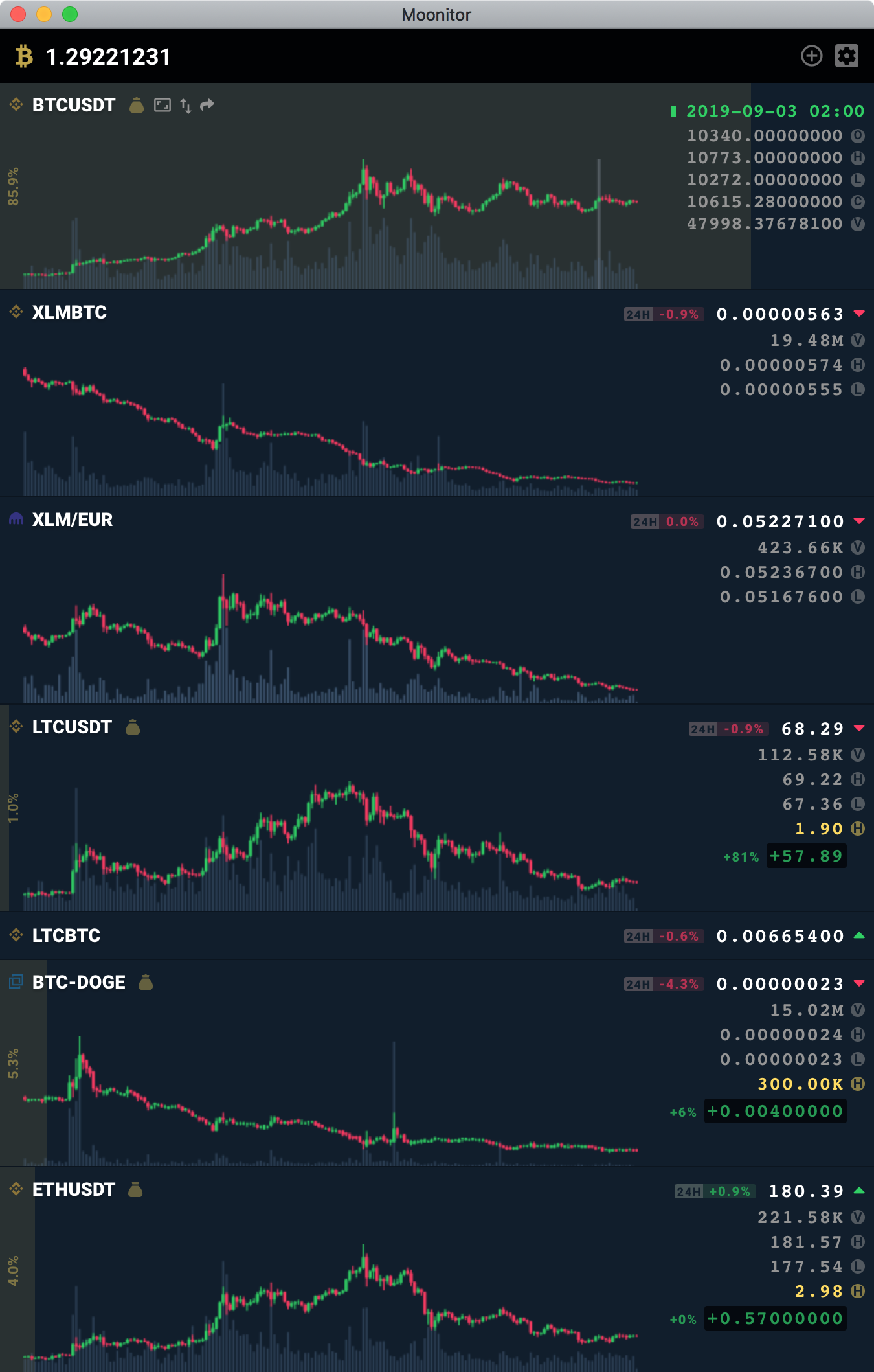 Moonitor is a sleek and user-friendly Desktop App (MacOS, Win10, Linux) giving you a clear overview of your cryptocurrency assets. Follow your portfolio growth in real-time and don’t miss any market opportunity.