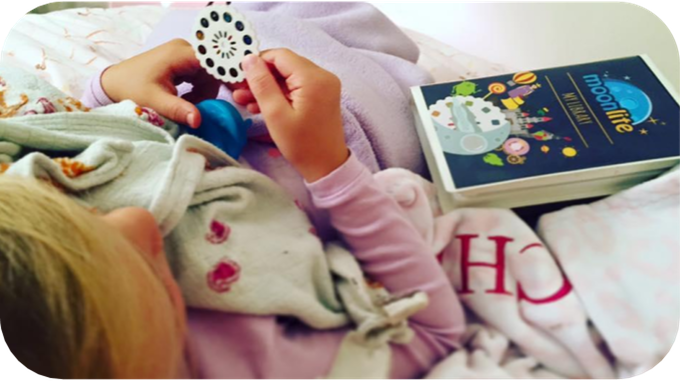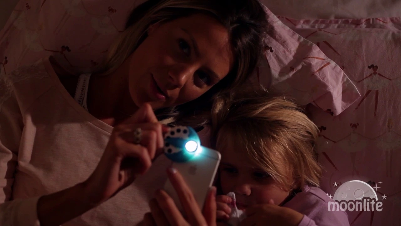 Moonlite is the first mini-projector device that attaches to almost any mobile phone. It uses the flash source from your mobile device to project images onto nearby surfaces. The Images, or Stories, are Encoded into the MoonLite Reels. Once inserted into the MoonLite Device, Images from the reel are Projected. The Accompanying Text to the Story Images is displayed on the screen of your phone, within the Moonlite App. This makes it easy to read while projecting the story images. It's super fun gadget and children love it. With cute projections, sound effects, read-a-long features and more, Moonlite makes reading bedtime stories an event that both children and parents look forward to. Moonlite current supports iPhone 6 and higher & Samsung Galaxy S6 and higher.