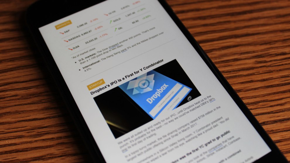 Morning Brew is a daily newsletter designed for young business professionals. Each morning email has a stock market recap, a few short briefs on the most important business news of the day and a small section with lifestyle content. The result is the perfect mix of Wall Street essentials (like market analysis) and tech news (like a deep dive on Y Combinator).
