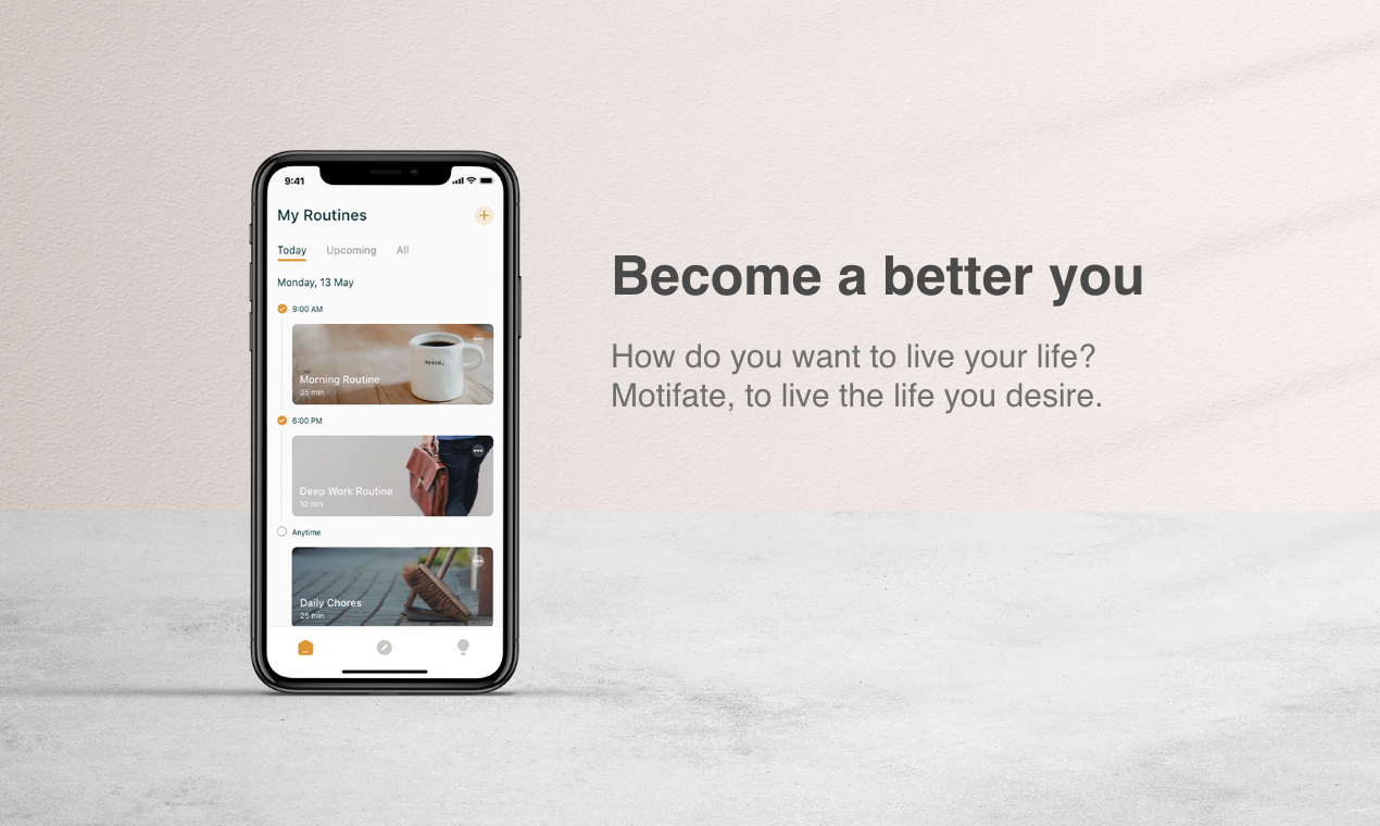 Hi, co-founder of Motifate here. The world’s going through a whirlwind of troubles but that shouldn’t shake our ground. In fact this is the opportunity more than ever to take charge of our lives, dig up those childhood dreams we once had and try to work towards making the world a better place. Motifate is not just another app, we want to become your companion to living a healthy and fulfilled life. Build habits to live productively and become a better you. We are dreaming big, and the challenge is on you. Exclusive features ? • Schedule routine reminders to time and/or location. • Change routine actions during routines to suit daily schedule. • Integrate music with Spotify, Apple Music while playing routines. • Copy, paste and edit routine templates from routine gallery. • Analytics to review time spent, completion rate and see areas that needs attention. • Receive tips to build better habits. Do you have any routine you have interest. Can you share it?
