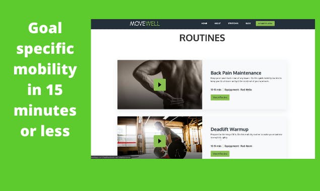 MoveWell creates goal-specific mobility and stretching routines you can do in under 15 minutes per day. Plus, live yoga weekly. Remote workers can do quick, simple mobility & stretching routines throughout the day to feel better, get stronger, and MoveWell.