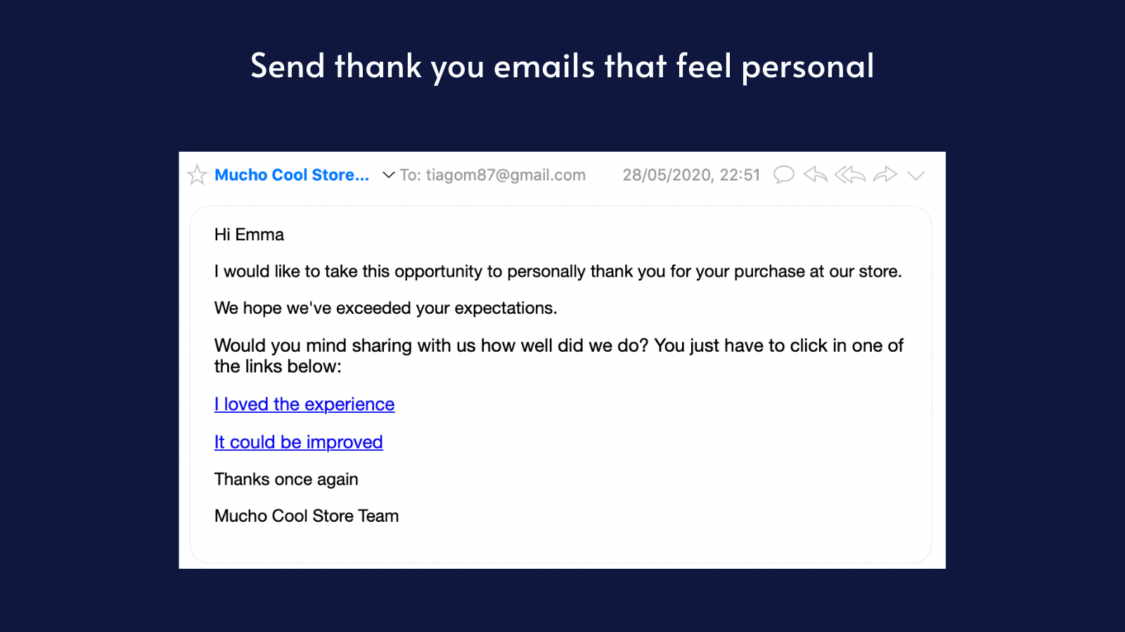 Are you unhappy with your current Google, Facebook or Trustpilot Rating? This app is the perfect solution to get you the perfect score so you can be the number one shop in your niche. Unlike most review applications, we believe that the right approach when asking for a review is to show true gratitude. The email should feel personal and actually express genuine thankfulness for that customer choosing to buy from you.
