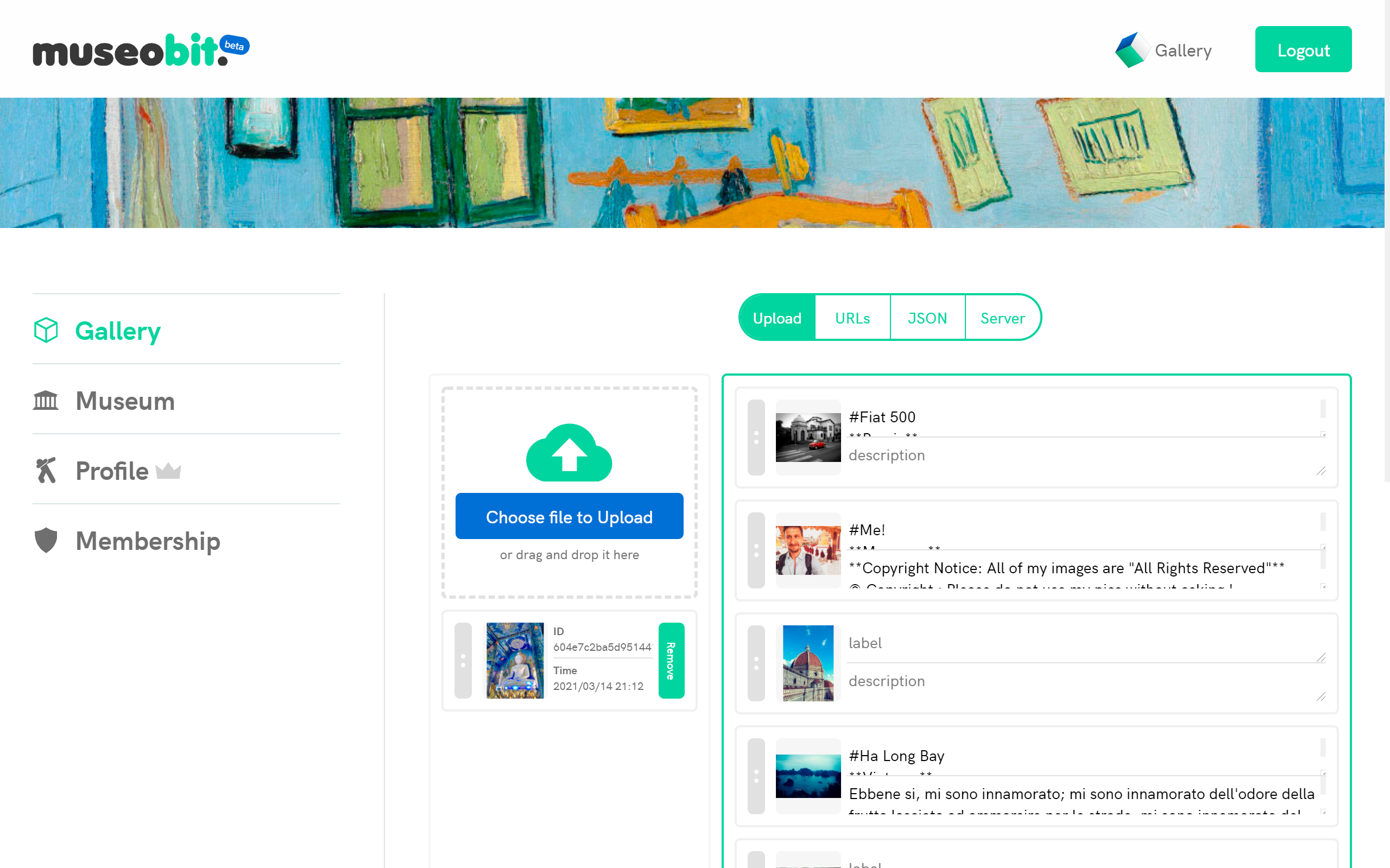 Make your 3D web gallery. A web app to make a simple gallery in few minutes to promote your art. https://museobit.com