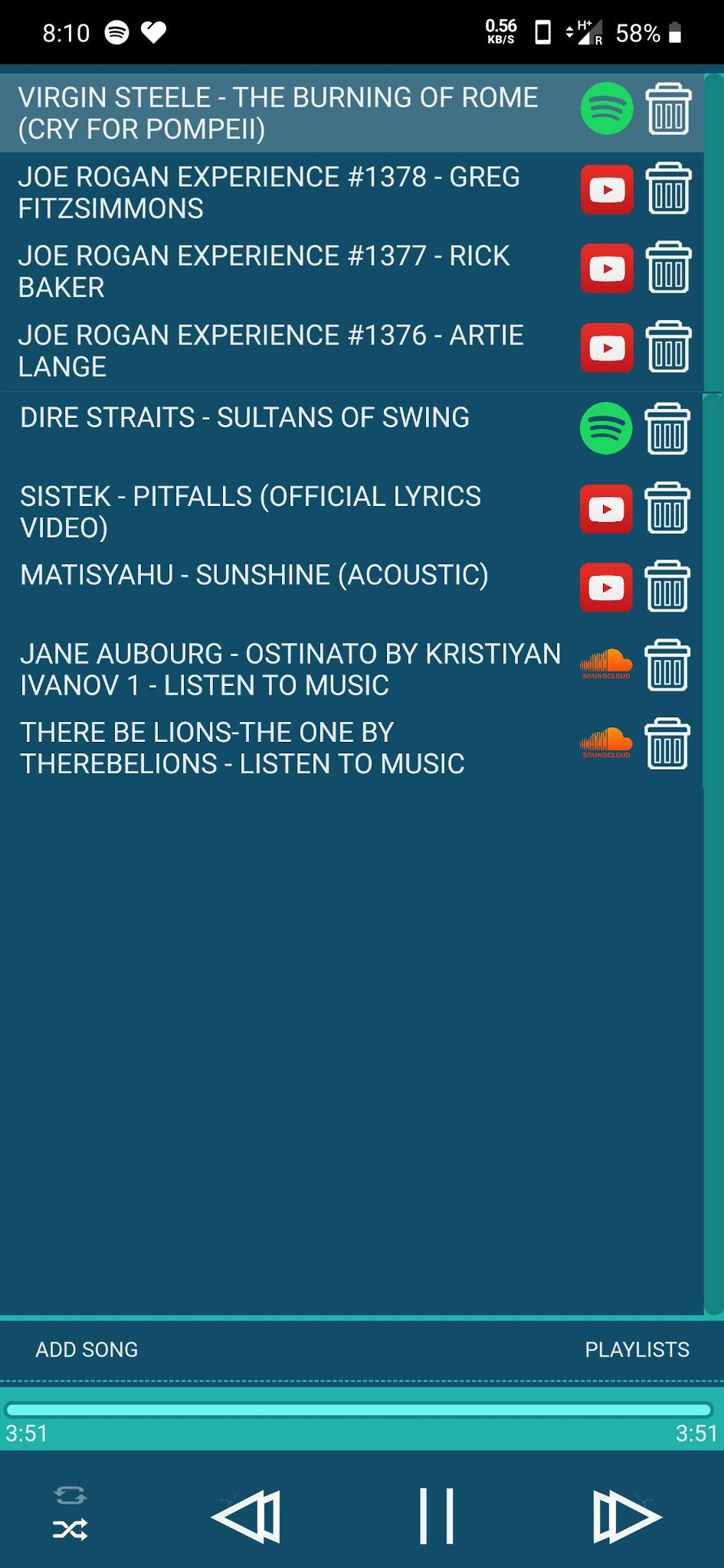 Music Meal Audio Player allows you to create playlists from different sources - Youtube, Soundcloud, Spotify or online radios links.