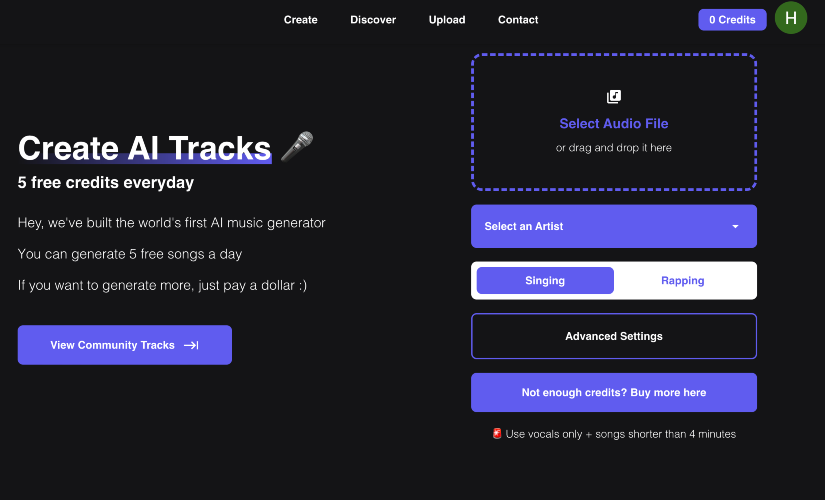 Musicfy is a platform for creating AI covers of your favorite songs and listening to songs others have created