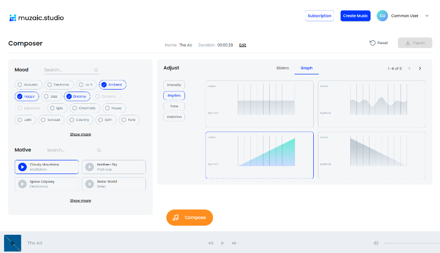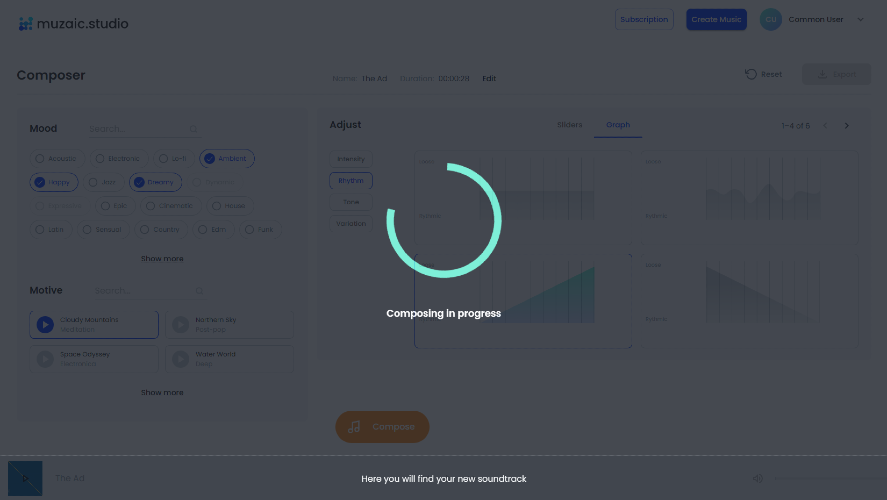 A tool that helps creative people craft music that is ideal for their needs. Get your one-of-a-kind soundtrack that is easily adapted to your vision, can be completed in one minute, and comes with copyright protection. Composed by AI and recorded by humans.