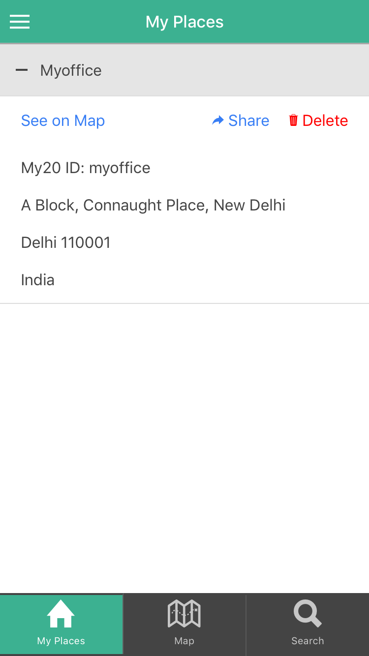 Do you love shopping online? Apparels, electronics, stationary, groceries, veggies and what not? Have you come across situations where the delivery guy calls you up and demands to know the directions to your home? Do you feel frustrated filling up your Delivery addresses on every website you shop? If YES is the answer, My20 App is for you. Pin your Location & Share My20 App lets you pinpoint your accurate location with the help of GPS and you can further override and pinpoint your location manually to be even more accurate. You can create a direct link to your saved location and share with anyone. You can mention the address link on the delivery address of your online orders on any of the shopping websites. The delivery guy can use this link to navigate to your location at the time of delivery without having to bother you for getting the directions.