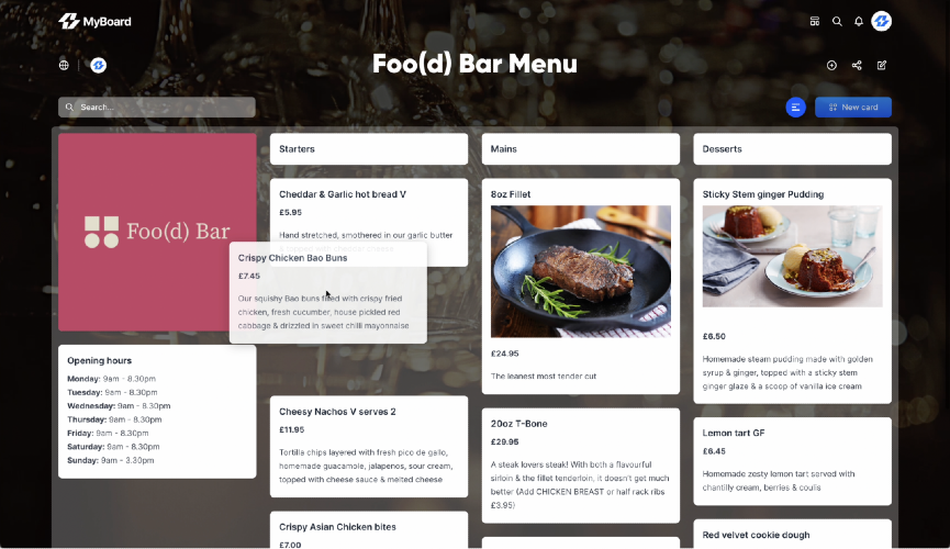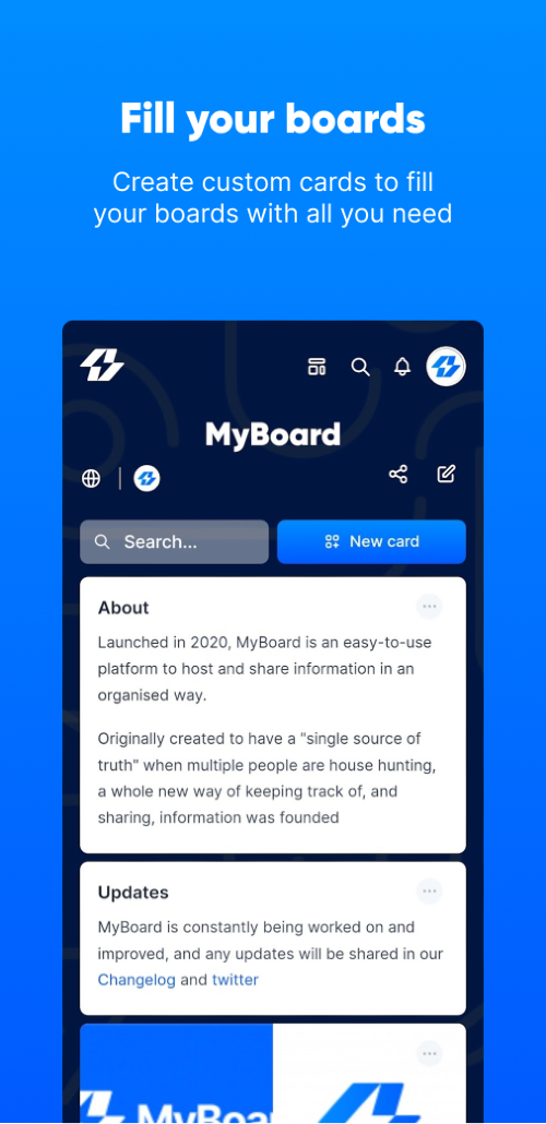 MyBoard is a platform for creating and sharing multiple boards to organise your thoughts, notes, or links. Each board is made of multiple "cards" and these cards can be links, images, notes, and much more. Originally built as a tool to save links to houses for couples that are looking to buy, the dynamicity and flexibility of MyBoard has proven to be incredibly useful for a tonne of other use-cases such as portfolios, roadmaps, restaurant menus, and much more.