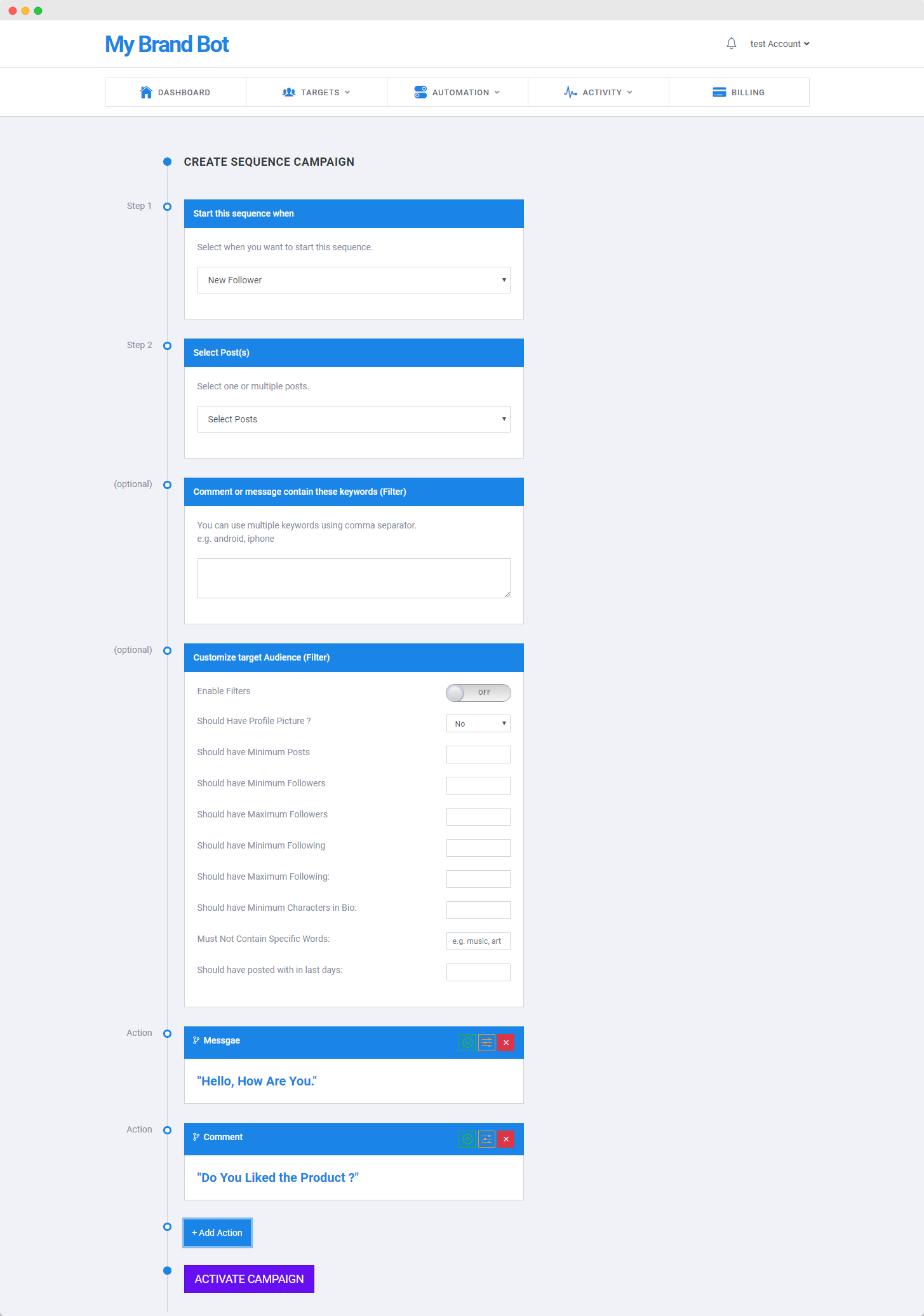 MyBrandBot provides all the tools your need for your Instagram marketing in one place. Posting, engaging & getting new followers on autopilot. MyBrandBot is the first Instagram marketing tool with DM Autoresponder.