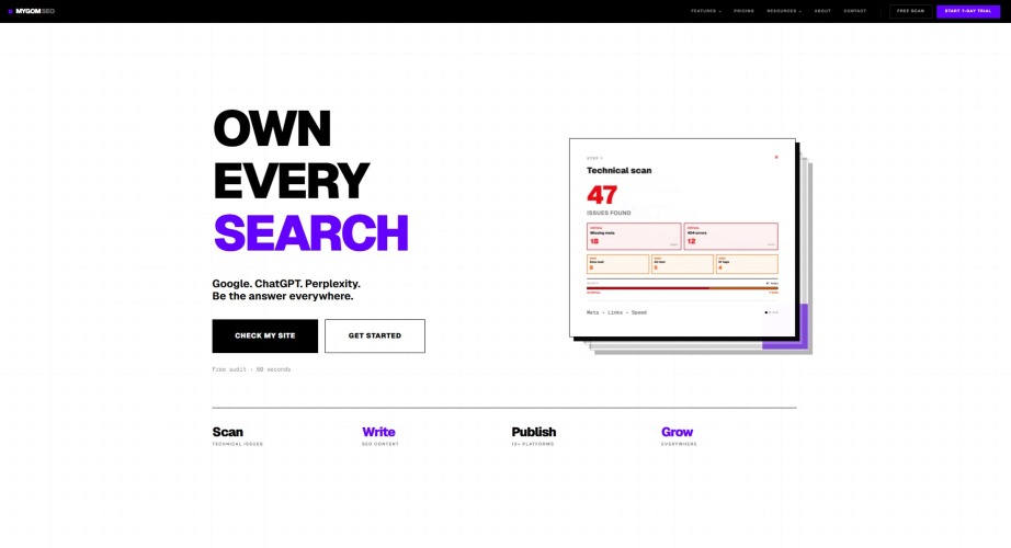 MygomSEO is an AI marketing agent that works like a CMO who never clocks out. It audits your site, tracks your keywords, monitors your backlinks, writes your content, publishes it across 12 CMS platforms, and promotes it on five social networks - all from one conversation. When something changes in your rankings, it doesn't send you a chart. It investigates across every data source, finds the root cause, writes targeted content to recover, and publishes the fix. Articles go through research, outlining, writing, review, image generation, and quality scoring before they ship. Social posts get per-platform copy, media, and previews. The agent earns your trust over time - starting with full approval, graduating to independence as you work together. It learns your brand voice, remembers your strategy, and applies what worked. Background monitoring runs around the clock. You set the direction. It handles the rest.