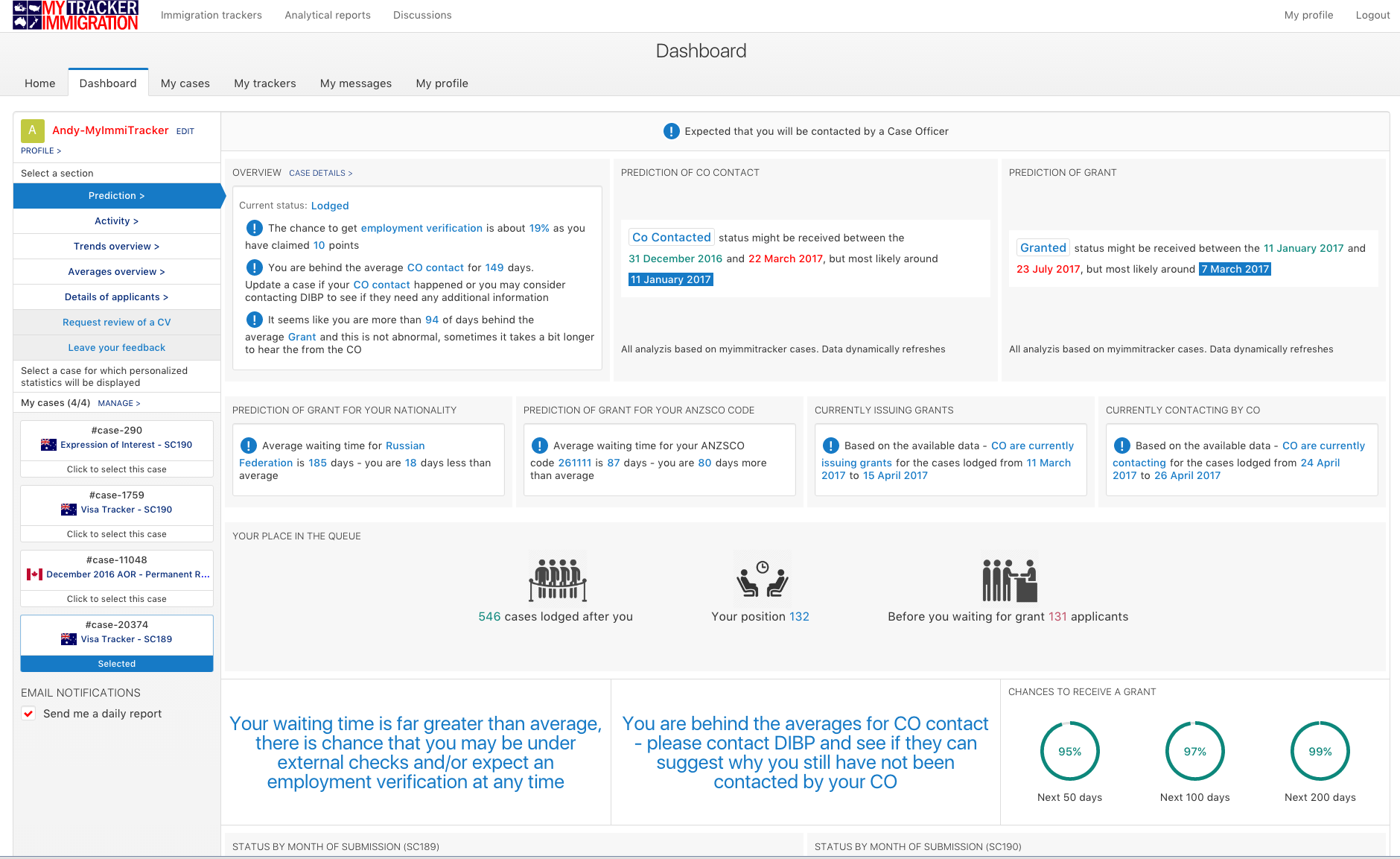 MyImmiTrackerwas launched on October the 1st 2015 with a goal of helping the immigrant community to fill-in-the-gap of not knowing when their visa would be issued. MyImmiTrackeris a collaborative community project which allows immigrant applicants to enter and then track and analyze the progress of their applications. Thousands of applicantsadd their application details on MyImmiTracker therefore creating a very large pool of relevant to an applicant cases, some of cases have similar characteristics, such as date of submission, nationality visa type and others. Based on these characteristics users can filter cases and analyze the trends which allow them to conclude that their application will be soon processed – such visibility brings certainty. MyImmiTrackergives you the platform to share, collaborate and analyze your case with many other similar applicants cases. Therefore, enabling you to be well informed on when you are about to get your visa.