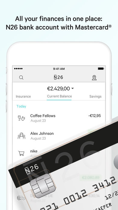 N26 is Europe’s first completely mobile bank, trusted by more than 500.000 customers. Get a bank account, Mastercard and core personal banking features like MoneyBeam for instant cash transfers between contacts. Add any number of financial products like overdraft, personal credit or investments. Download the N26 app and create an account from your phone in less than 8 minutes. With N26, you can run your entire financial life from your phone. N26 features include: - MoneyBeam –– instant cash transfers using only a contact’s email address or phone number - TransferWise — international money transfers into 19 different currencies - Realtime account activity push notifications - In-app card control to lock or reorder your card, enable payments abroad, enable online payments, and set withdrawal and payment limits - Automatic spending categorization - Up to 5 free ATM withdrawals per month from any ATM, based on a Fair Use policy