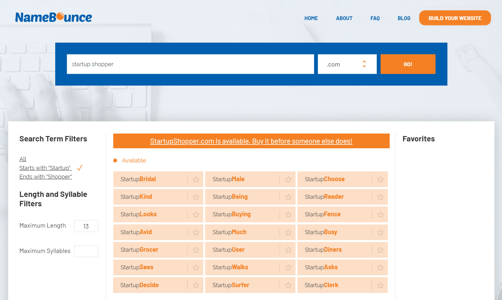 NameBounce is the internet's premier domain name generator. The mission of NameBounce is to combine powerful technology with a simple interface to help entrepreneurs bring their idea to life online. To learn more and start searching for names, visit NameBounce.com.